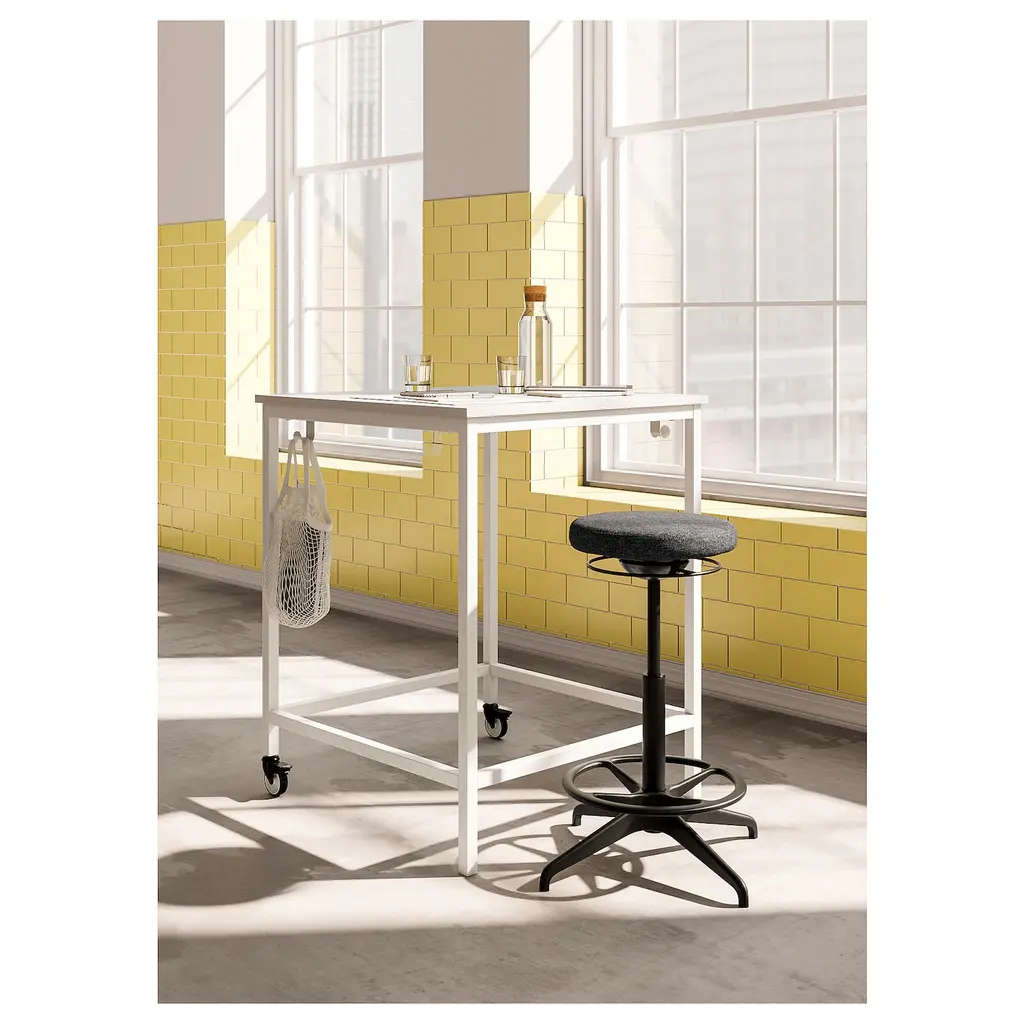 LIDKULLEN Sit/stand support - Gunnared dark gray. 10-year Warranty. Read about the terms in the warranty brochure. Gives an active sitting position, which improves your posture. Changing positions between sitting and standing helps you move your body so you both feel and work better.