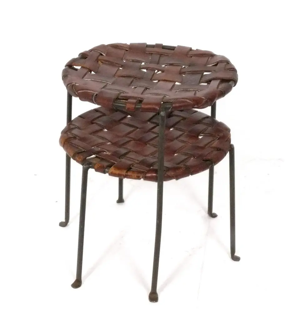 Lila Swift And Donald Monell Woven Leather And Iron Stools