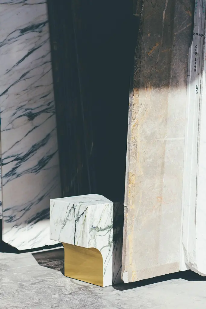 arch 01.1 c is a stool or side table. Its strong design language sets arch 01.1 c apart. The marble object is beautifully finished with a metal surface. Brass giving it a pop of gold. Without an obvious front, back, top or bottom, the object can be placed as wished, which offers many possibilities.The object is made of Calacatta Verde, a carefully chosen marble. The brass detail gives it a beautiful finish. This barh collectible piece is produced by craftsmen and comes in a limited edition of 8.barh is a high-end furniture and objects brand, known to combine the finest materials, design details and fine craftsmanship in unique creations, build for those who want to grant themselves something unique, extraordinary. Core values are subtlety and elegance as pinnacles of beauty. Contemporary, distinguished and timeless. Distinct, unique pieces, made with the finer materials and crafted one step beyond perfection. Guaranteeing an investment in exclusivity is exactly what will be supplied, a feeling of connected individuality and uniqueness.barh collectibles policy:Objects made under the barh collectible label come with the guarantee of being a limited edition. The new owner who is acquiring the object from barh, or the intermediate selling party, has the assurance that barh will only produce a maximum of 8 numbered pieces of this particular object in this specific setting (combination of used materials, dimensions, functionality and design). Whether or not the total maximum of 8 pieces is produced and commercialised is at barh’s discretion only, just as the when and how. Selling parties need to check availability at all times, before committing to a sale. barh’s limited edition objects will consist out of a maximum of 8 numbered objects (LE 1/8 to 8/8), up to 2 designer proofs made for finetuning (DP 1/2 to 2/2) and up to 1 workshop proofs for showcase and/or reference (WP 1). Whether DP’s and/or WP’s are produced and whether they are kept are at barh’s discretion only. The pricing of barh objects will evolve as follows: •1/8, 2/8, 3/8, 4/8 are at normal list price •5/8 = list price + 10%•6/8 = list price + 20%•7/8 = list price + 40%•8/8 = list price + 60 %In order to visualize and communicate on our integrity, barh will keep a record updated at all times of all collectible object sold. Every object will be numbered and will be foreseen of an official document detailing its authenticity. Reproductions, in case they should be encountered, are not original works of furniture design. Unless explicitly mentioned, no other company nor person will have the right to (re)produce barh designs/objects under any shape or form as they will become subject to judicial claims. Enjoy your unique artefact.