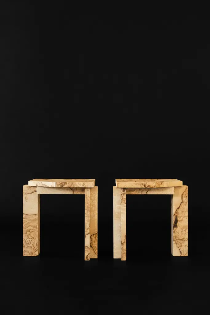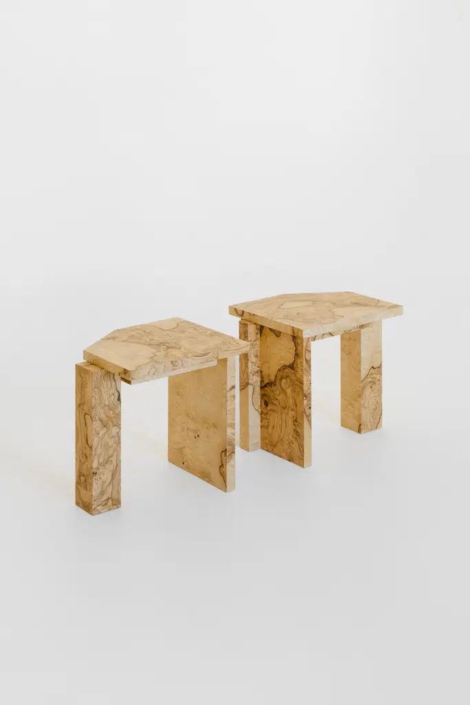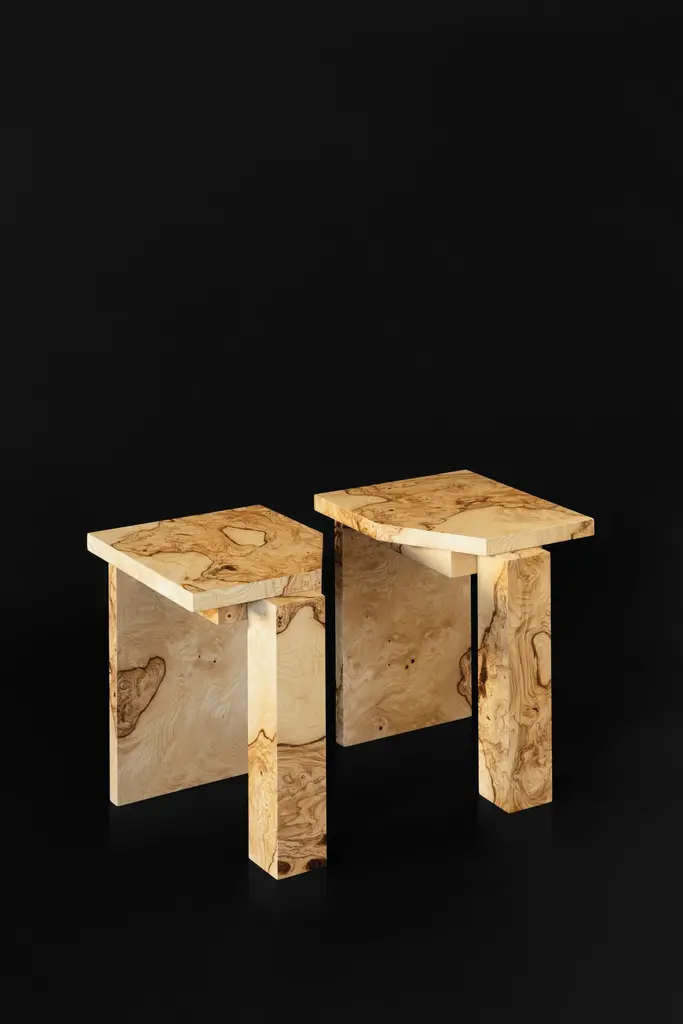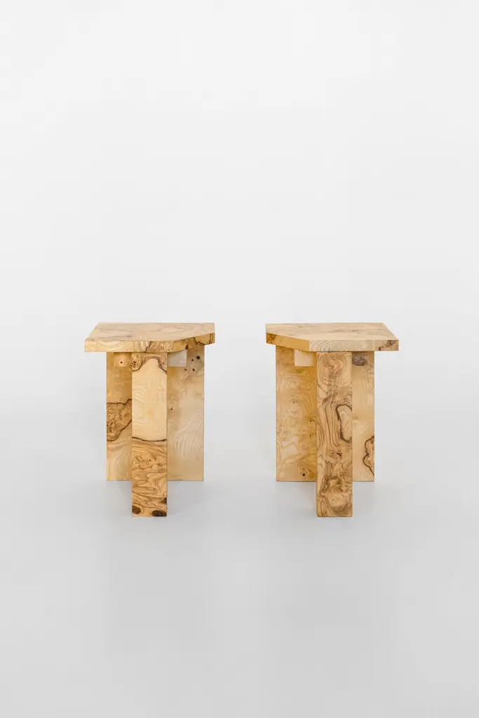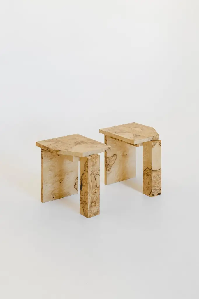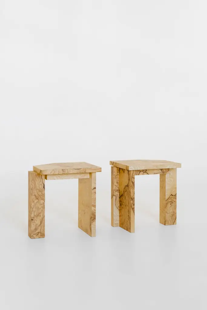 Limited Edition SSS01W Stool in MDF with Lacewood Veneer by sashaxsashaLimited Edition of 8 + 2 A.PDimensions: D 30 x W 35 x H 40 cm. Materials: MDF and lacewood veneer.sashaxsasha is a design duo based in Paris, France. Originally from Moscow, Alexandra (Sasha) Gineva and Alexander (Sasha) Dobrovskiy studied architecture in Ghent, Belgium. In 2013, they launched their architecture practice, Masterskaya Be, and in 2019 expanded their vision with sashaxsasha, a studio dedicated to product design. From the outset, Sasha and Sasha have drawn inspiration from contemporary and classic art, using it as a reference in their private and public commissions. Today the studio is working in both worlds – architecture and product design. With sashaxsasha, the duo distils their rich visual library to create objects that are at once playful and monumental, each piece a homage to their diverse background and memories.