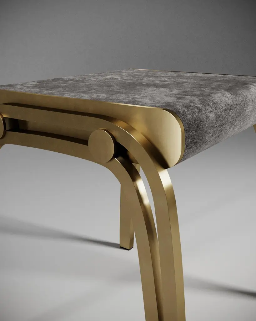 The Paris based label has distinguished themselves since their launch, with their iconic use of shagreen mixed with brass and other exotic materials. All furniture is handcrafted by skilled artisans, ultimately making each piece unique, designed in Paris and produced in the Philippines.The Limited Edition Victoria stool by R&Y Augousti is a sophisticated piece that provides comfort, whilst retaining its elegant and luxurious aesthetic. The the seat is upholstered in a dark grey black-hue Pierre Frey Velvet, with a bronze-patina brass frame. Available in other finish combos, see images at end of slide. This Stool is a part of a 4-piece limited edition capsule collection by R&Y Augousti, see images at end of slide. The dimensions of this piece are 54 x 47 x 50 cm All R&Y Augousti pieces are handmade by artisans, ultimately making each piece unique. Wipe clean with soft dry cloth.Acclaimed design duo Ria & Yiouri Augousti have established themselves since the 1990s as pioneers of modern-vintage style through their luxurious Art Deco inspired collections.The Paris based label has distinguished themselves since their launch, with their iconic use of shagreen mixed with brass and other exotic materials. All furniture is handcrafted by skilled artisans, ultimately making each piece unique. All shagreen-covered items should be kept out of direct sunlight, color variants may occur on the stingray and other exotic finishes, but this showcases the Parisian label's commitment to creating authentic luxurious products using natural components.