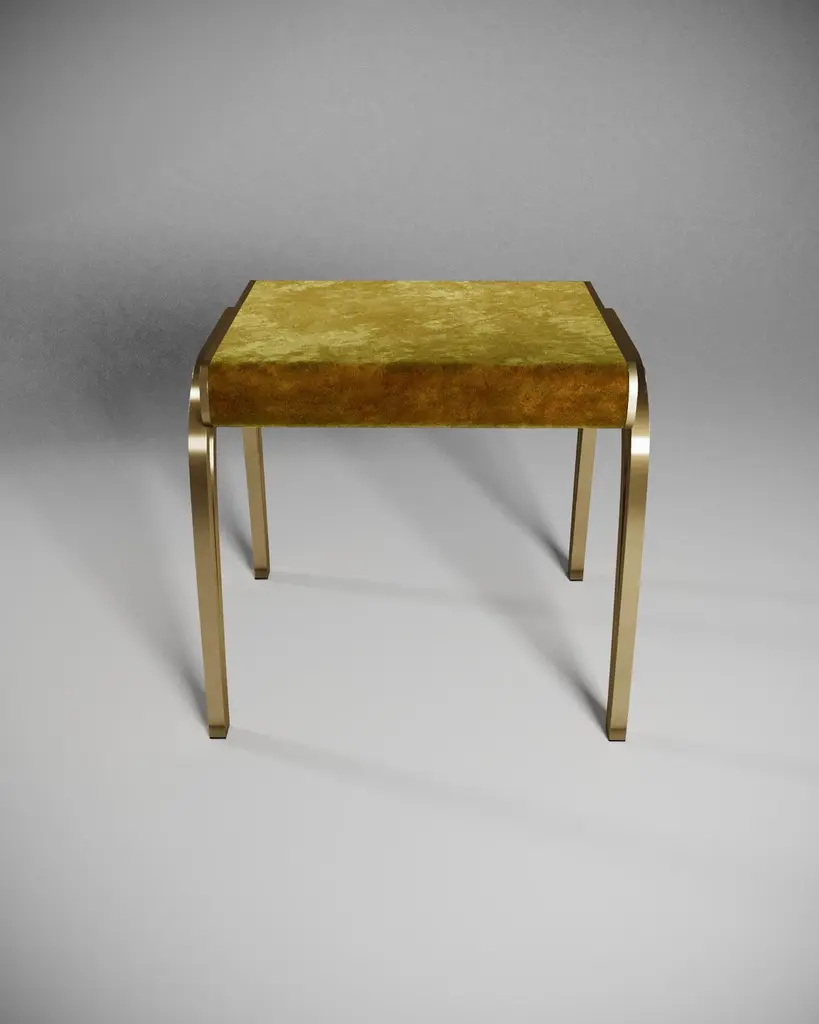 The Paris based label has distinguished themselves since their launch, with their iconic use of shagreen mixed with brass and other exotic materials. All furniture is handcrafted by skilled artisans, ultimately making each piece unique, designed in Paris and produced in the Philippines.The limited edition Victoria stool by R&Y Augousti is a sophisticated piece that provides comfort, whilst retaining its elegant and luxurious aesthetic. The the seat is upholstered in a mustard-hue Pierre Frey Velvet, with a bronze-patina brass frame. Available in other finish combos, see images at end of slide. This Stool is a part of a 4-piece limited edition capsule collection by R&Y Augousti, see images at end of slide. The dimensions of this piece are 54 x 47 x 50 cm All R&Y Augousti pieces are handmade by artisans, ultimately making each piece unique. Wipe clean with soft dry cloth.Acclaimed design duo Ria & Yiouri Augousti have established themselves since the 1990s as pioneers of modern-vintage style through their luxurious Art Deco inspired collections.The Paris based label has distinguished themselves since their launch, with their iconic use of shagreen mixed with brass and other exotic materials. All furniture is handcrafted by skilled artisans, ultimately making each piece unique. All shagreen-covered items should be kept out of direct sunlight, color variants may occur on the stingray and other exotic finishes, but this showcases the Parisian label's commitment to creating authentic luxurious products using natural components.