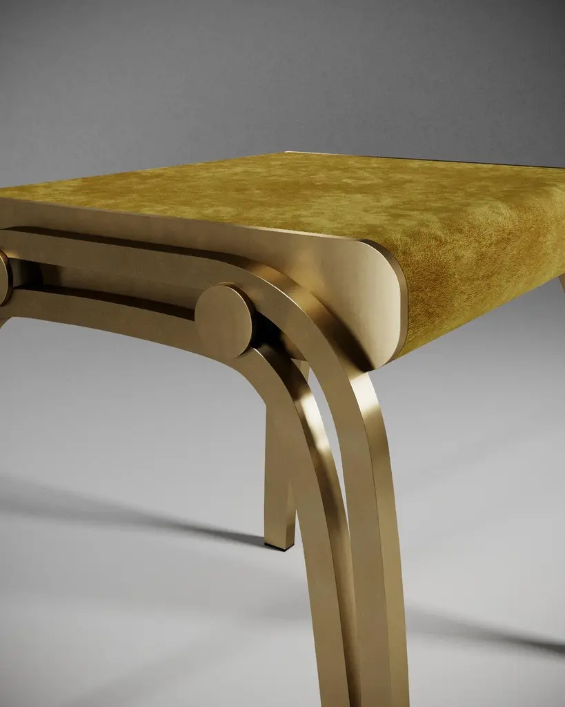 Limited Edition Victoria Stool In Mustard Velvet And Brass By R&y Augousti