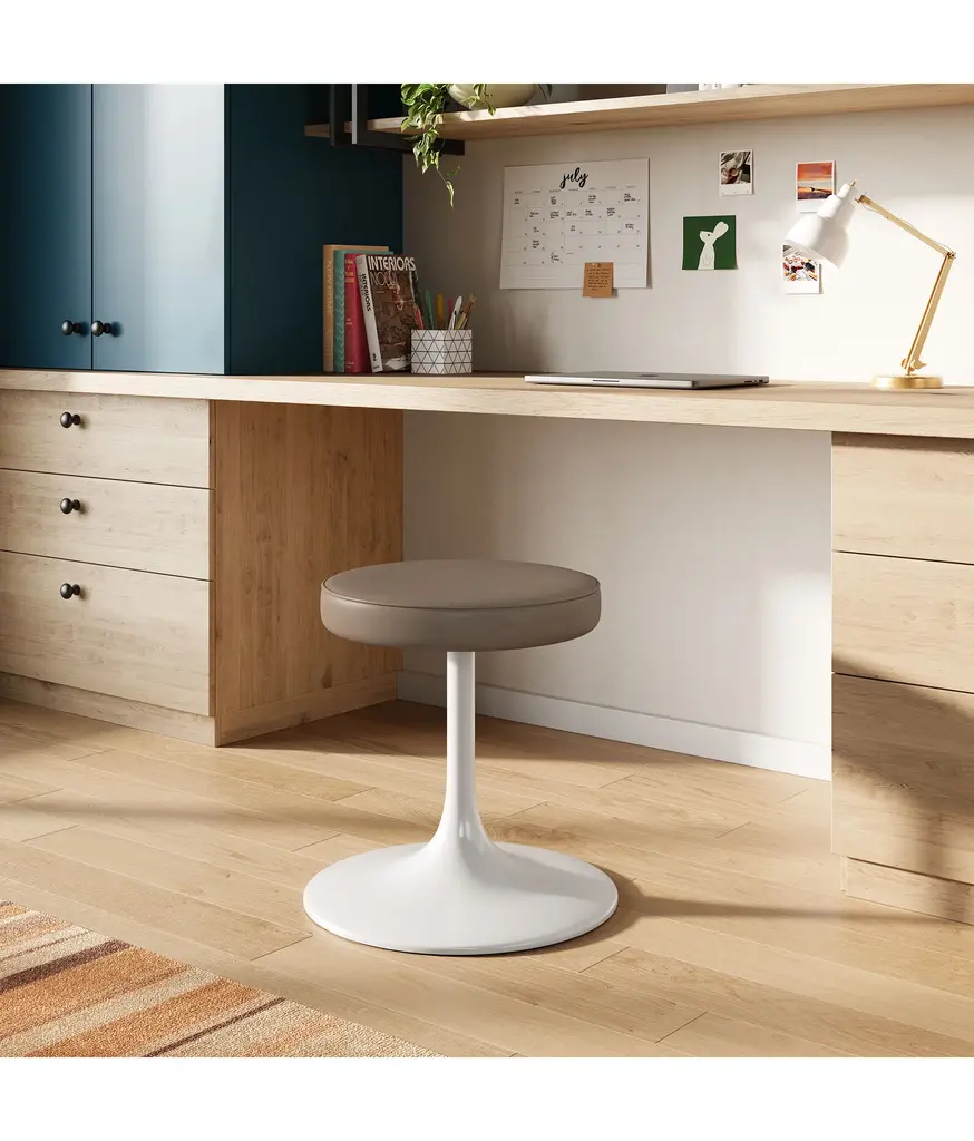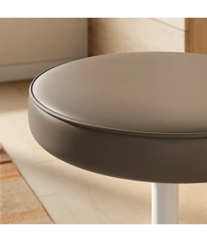 Lippa Vegan Leather Round Stool, Mushroom Brown