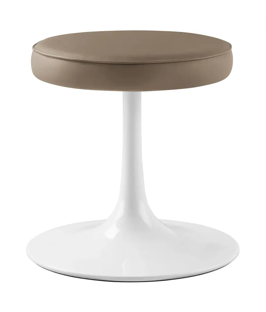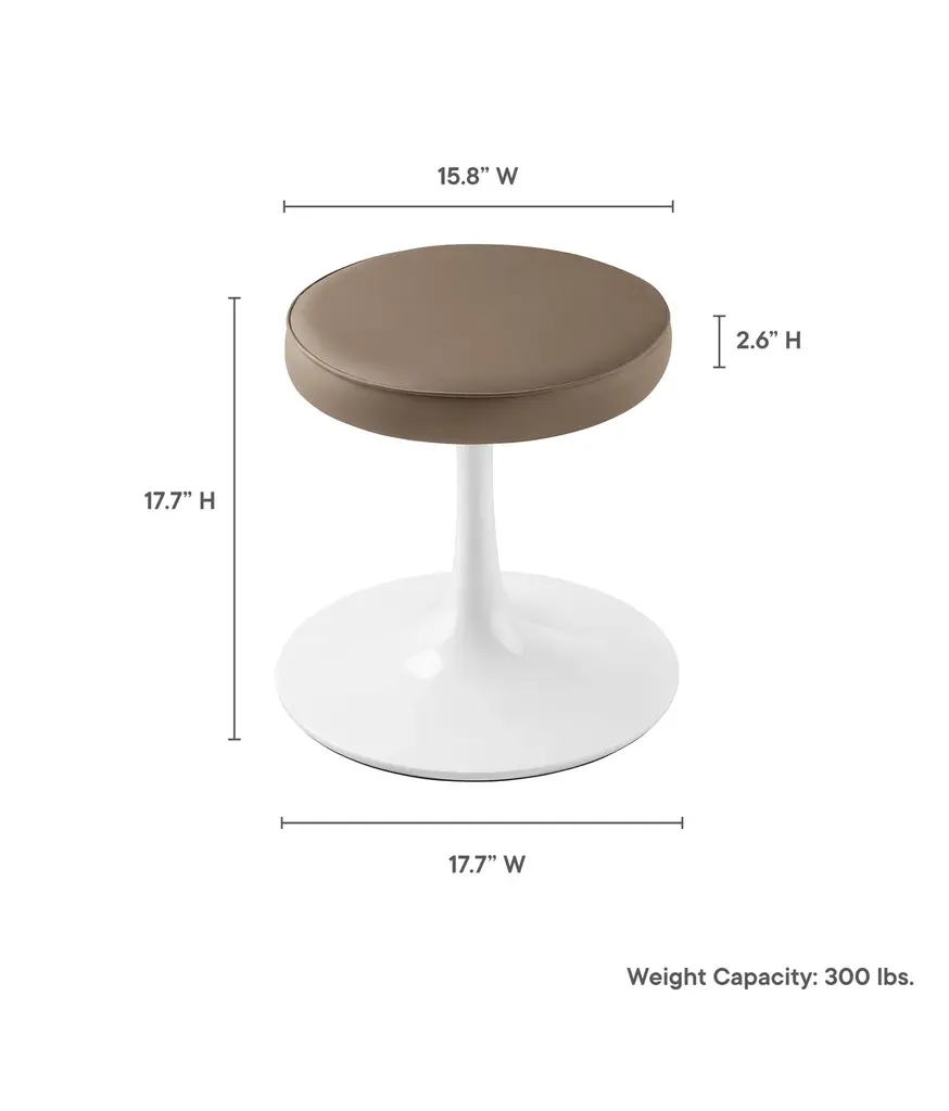 Let modern inspiration flow with the Lippa 18 Round Stool, a versatile addition to any space. Perfect as a kitchen stool, vanity stool, or accent stool, Lippa combines everyday usability with a modern yet timeless look. Its fixed faux leather seat rests atop a sleek tapered pedestal base crafted from powder-coated metal, designed to be chip-resistant and durable. The round design and glossy finish make it an iconic mid-century modern sitting stool, doubling as a plant stand or small table. Non-marking ring is included to protect flooring. No assembly required. Weight Capacity: 300 lbs.