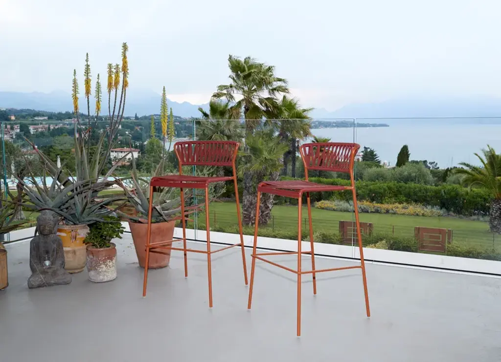 A stool with a cool core, with seat and backrest in PVC wires to make it practical, light to move, and stackable, which reminds us of the gardens of our past. The must-have piece of furniture for outdoor spaces, informal yet well-finished, made refined by the structure/frame combination. Designed for contract environments, it gives a touch of summer carefreeness to bars and restaurants along the sea. Lisa reflects the sophisticated tone that infused interior decor in the ‘50s and ‘60s. Its shape inspires a sense of reassuring warmth, retro charm and memories of home. The enveloping and comfortably upholstered seatback and seat make Lisa the ideal complement to a living room or contract setting. The lightweight but strong metal structure heightens the visual sense of lightness. Lisa comes in two versions: chair, armchair and stool.