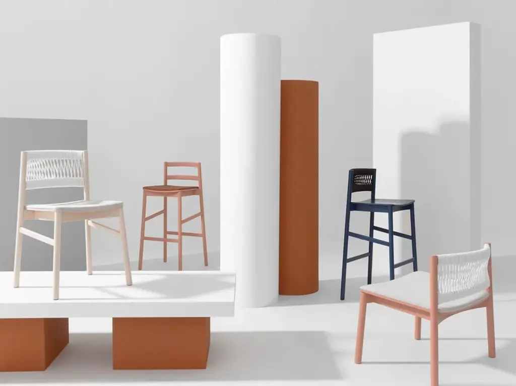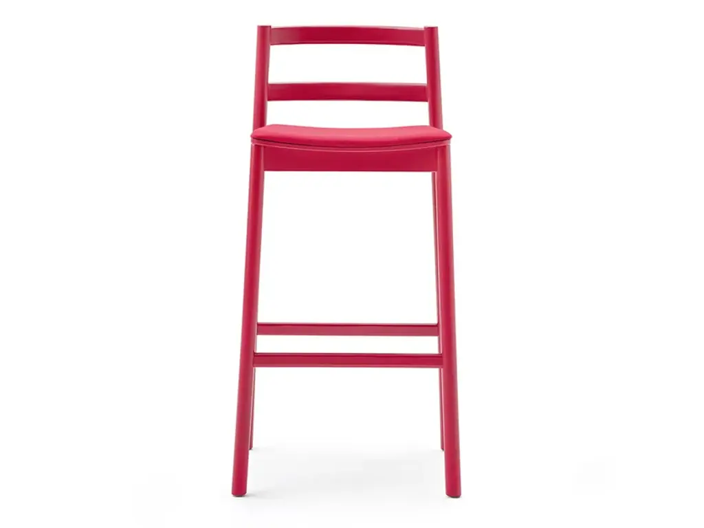 Load 649 is a high stool with a solid beech wood frame and an upholstered seat.Load is a collection that makes the correspondence between form and function its fundamental principle.Starting from a chair reduced to its bare essentials, the typological and aesthetic creativity of this collection unfolds, which—besides the chair—includes an armchair, a small armchair, and a stool.Load is also available in versions with a backrest woven in nautical rope, a craftsmanship inspired by Billiani’s territory, situated between hills and plains and not far from the sea.