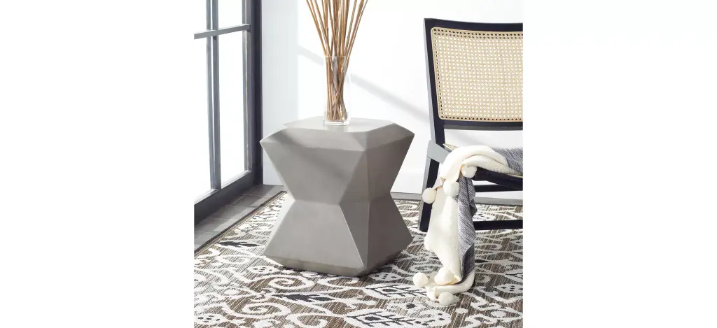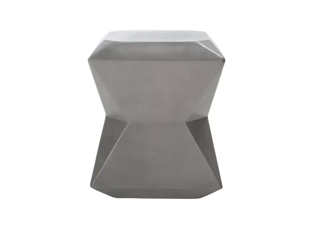 Inspired by modern sculptures found in botanical gardens, the Lodi Accent Stool is outdoor art all its own. Lodi's geometric hourglass silhouette in grey concrete headlines multi-faceted accents, giving it rich decorative depth.