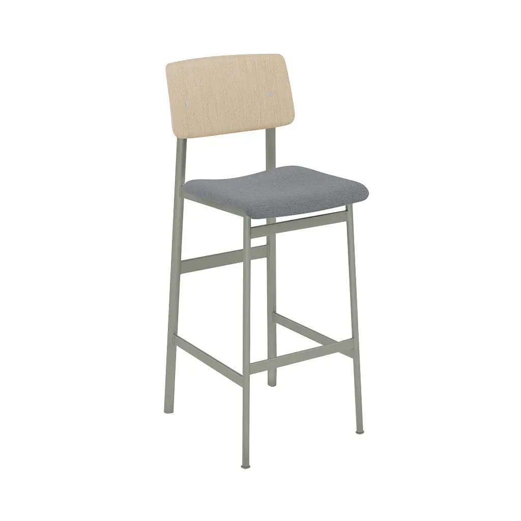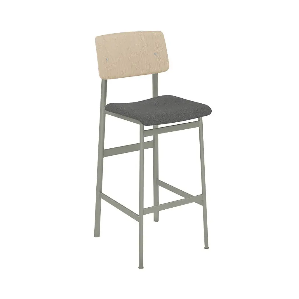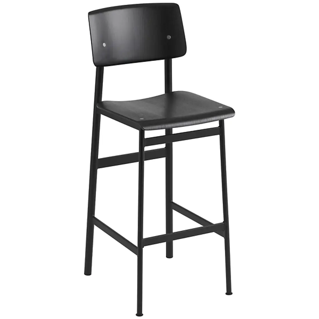 Simple, straightforward, and strong. The Loft Stool from Muuto offers an appealing industrial accent to indoor living spaces. Ideal for providing seating at bars or counters, it rises from a four-legged structure in powder-coated steel, the slender front legs and more robust back legs ascending to a sleek seat and back made of curving plywood. Both seat and back contrast well with the metal structure beneath it, each one secured with strong, flush-fitting bolts that provide a final element of contrast.