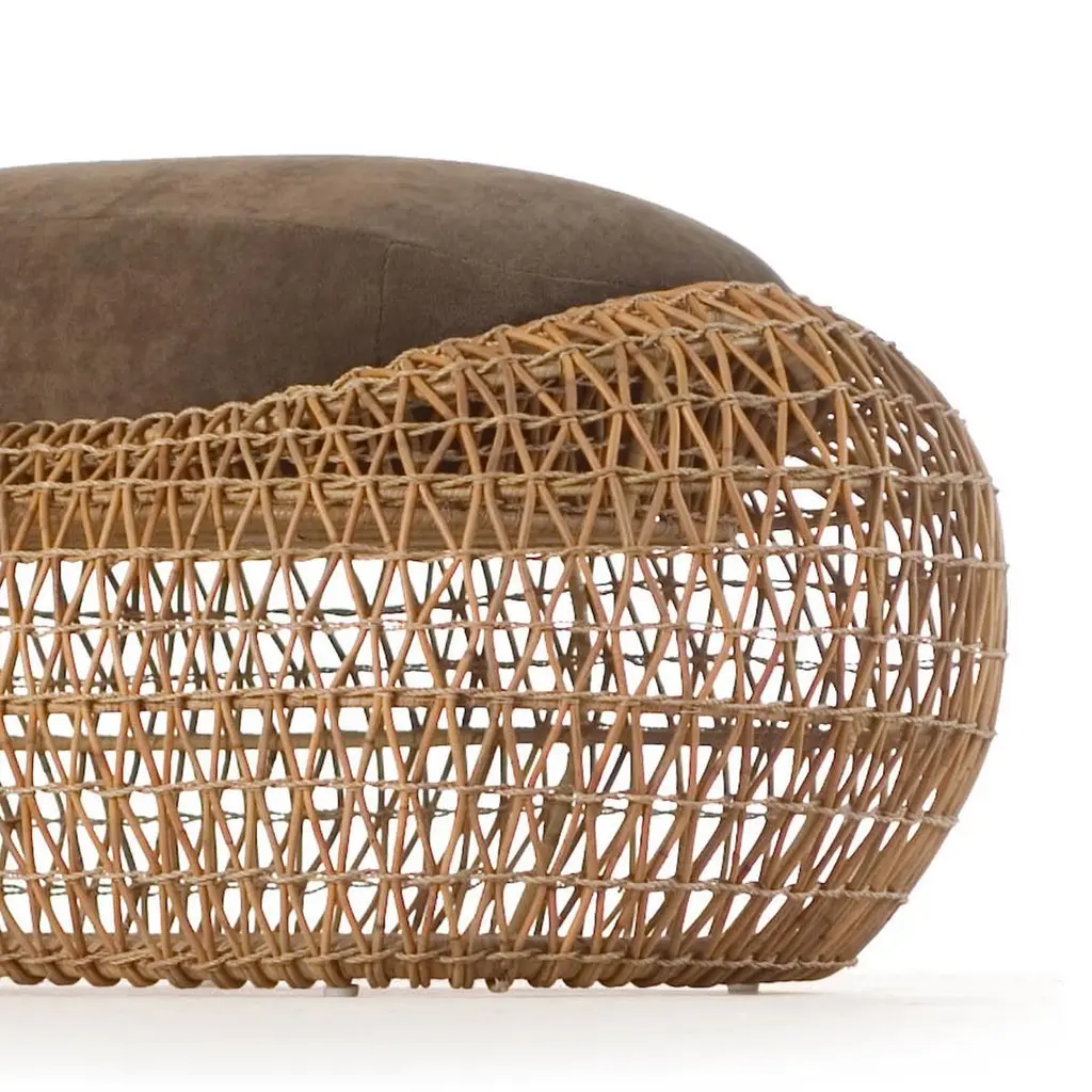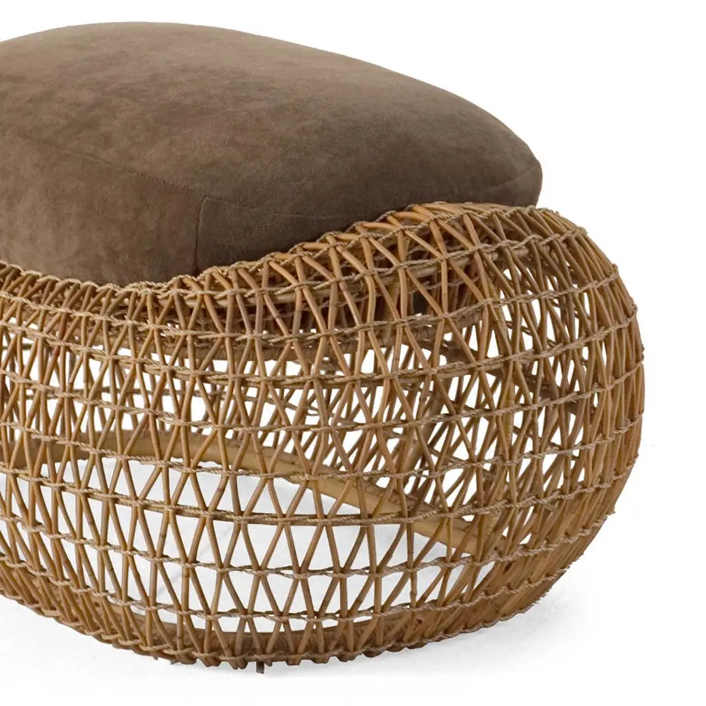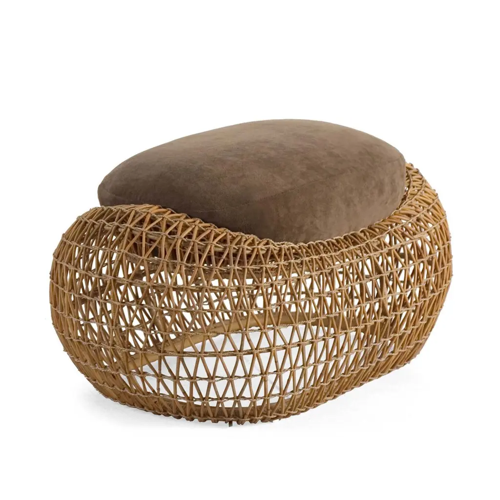 Stool or footrest lombok indoor or outdoor withstructure in steel and natural rattan. Withcushion seat included. Colors finish in taup, brown,or ocher. Lead time production if on stock 2-3 weeks,if not on stock 23-24 weeks.