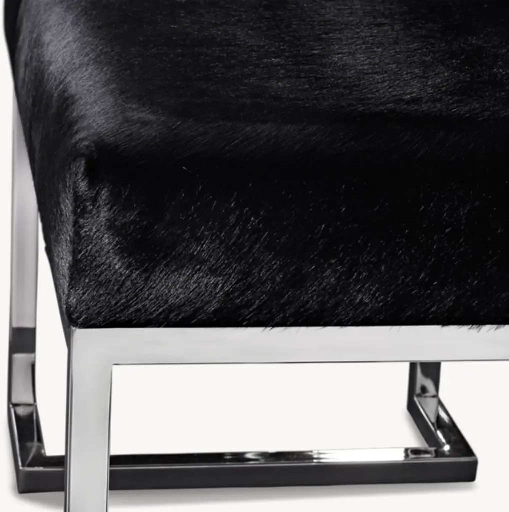 American and Italian designers in the late 20th century infused the spare lines of midcentury design with luxe materials and glamorous finishes. Our seating features an angular polished metal base topped with a textural cushion upholstered in hair-on hide. Guaranteed for life. ALSO AVAILABLE IN LEATHER