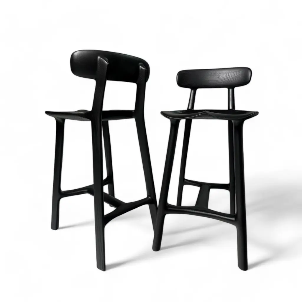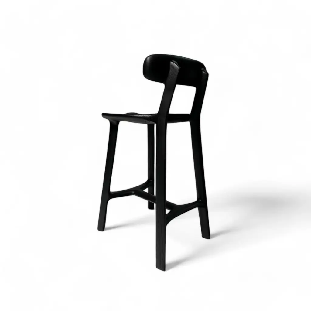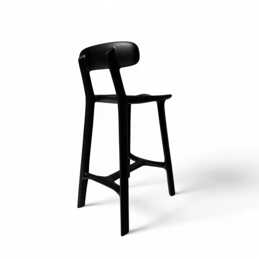 The Low Back Morphe Stool is an evolution of the original Naturalstated Fabricators Morphe Stool, retaining the original sculpted and form fitting elements while adding a backrest. The Low Back Morphe Stool combines form and function seamlessly. Its organic silhouette and contoured seat and back offer comfort and bold, unique aesthetics. The Low Back Morphe Stool is crafted from North American Hardwoods with mortise and tenon joinery.The Low Back Morphe Stool is offered in counter and bar heights with three standard wood/finish options: Natural Ash, Blackened Ash, and Walnut. Our finishes are water based, 2 component urethanes that have high scratch and chemical resistance. Low Back Morphe Stools are made to order and have an approximate lead time of 12 weeks. Please feel free to inquire for current lead times.