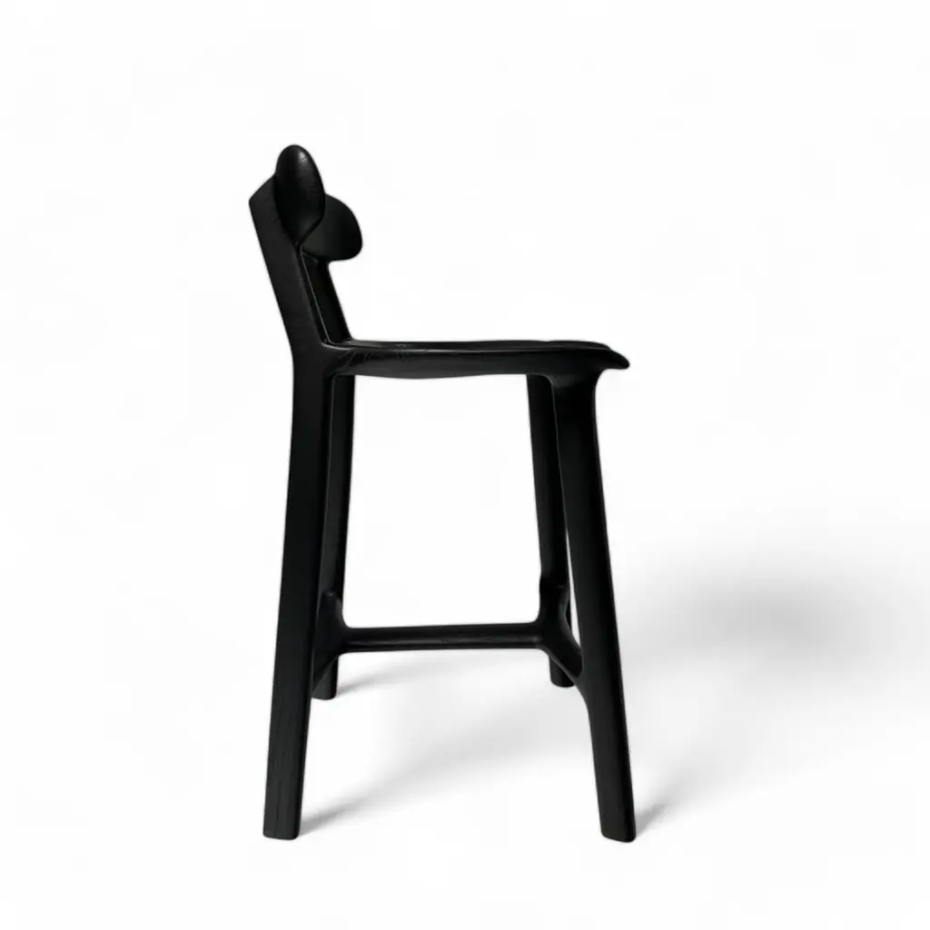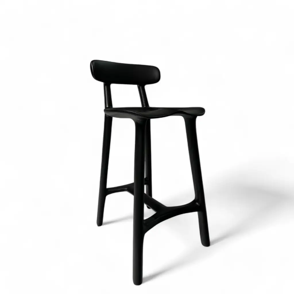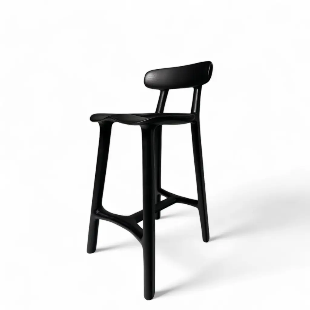 The Low Back Morphe Stool is an evolution of the original Naturalstated Fabricators Morphe Stool, retaining the original sculpted and form fitting elements while adding a backrest. The Low Back Morphe Stool combines form and function seamlessly. Its organic silhouette and contoured seat and back offer comfort and bold, unique aesthetics. The Low Back Morphe Stool is crafted from North American Hardwoods with mortise and tenon joinery.The Low Back Morphe Stool is offered in counter and bar heights with three standard wood/finish options: Natural Ash, Blackened Ash, and Walnut. Our finishes are water based, 2 component urethanes that have high scratch and chemical resistance. Low Back Morphe Stools are made to order and have an approximate lead time of 12 weeks. Please feel free to inquire for current lead times.