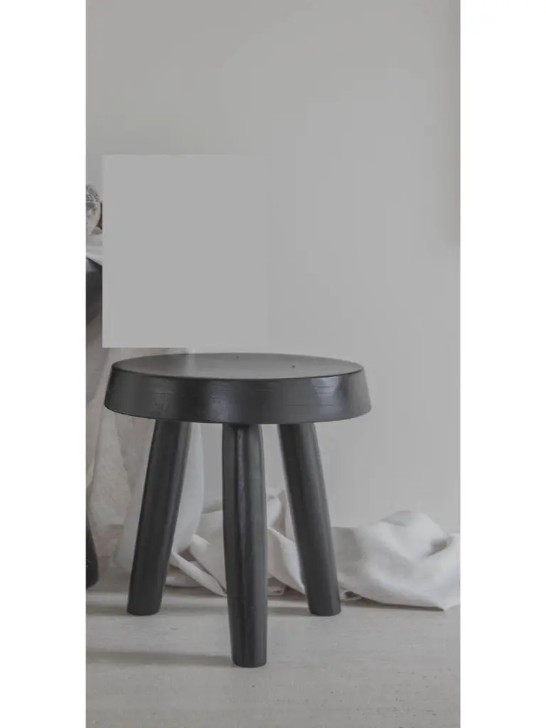 Low black stained milk stoolsDimensions: Diameter 30cm x height 30cmMaterials: Natural wood. Pigment.Available in multiple materials and finishes.Technique: Carved wood. Handmade. Oiled. StainedBicci de’ Medici manufactures exclusive design pieces, formed by hand, conceived by emotion. Respecting craftsmanship and focusing on natural materials such asStone, wood, loam, organic fabrics, and porcelain. A Belgian design company delivering handmade furniture, special pieces, and decoration for a unique audience, tailored to fit their style and spirit.Providing them with serene and distinguished objects, both new and old to ensure one-of-a-kind realizations. We take these projects seriously, that’s why we offer custom-made solutions, furnishings, and accessories. Our aim is to create rare and restrictive pieces which make your environment notable but in a subtle way. Bicci de’ Medici is available at selected dealers and (interior) architects.
