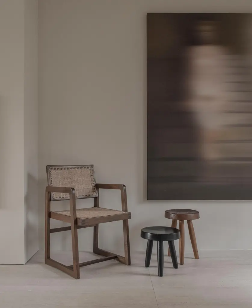 Low black stained milk stools.Dimensions: diameter 30cm x height 30cm.Materials: natural wood. Pigment.Available in multiple materials and finishes.Technique: Carved wood. Handmade. Oiled. StainedBicci de’ Medici manufactures exclusive design pieces, formed by hand, conceived by emotion. Respecting craftsmanship and focusing on natural materials such asstone, wood, loam, organic fabrics, and porcelain. A Belgian design company delivering handmade furniture, special pieces, and decoration for a unique audience, tailored to fit their style and spirit.Providing them with serene and distinguished objects, both new and old to ensure one-of-a-kind realizations. We take these projects seriously, that’s why we offer custom-made solutions, furnishings, and accessories. Our aim is to create rare and restrictive pieces which make your environment notable but in a subtle way. Bicci de’ Medici is available at selected dealers and (interior) architects.