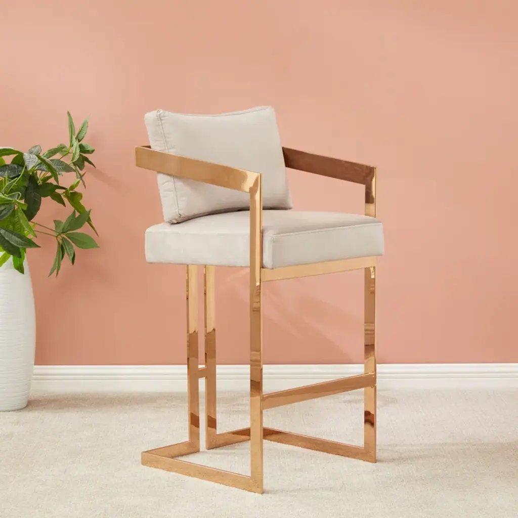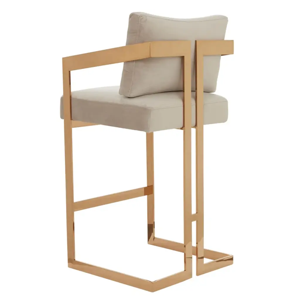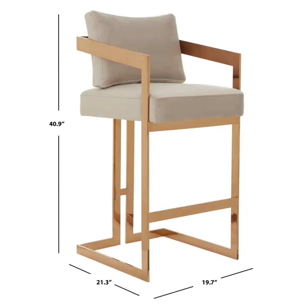Furnish the kitchen or bar area in modern style with this soft curve lumbar frame Lucca Counter Height Stool. The high polish solid iron frame provides a sturdy base, while the soft linen seat ensures maximum comfort. The combination of angles and gentle curves gives this stool an eye-catching appearance, while the neutral color allows it to match well with any decor.