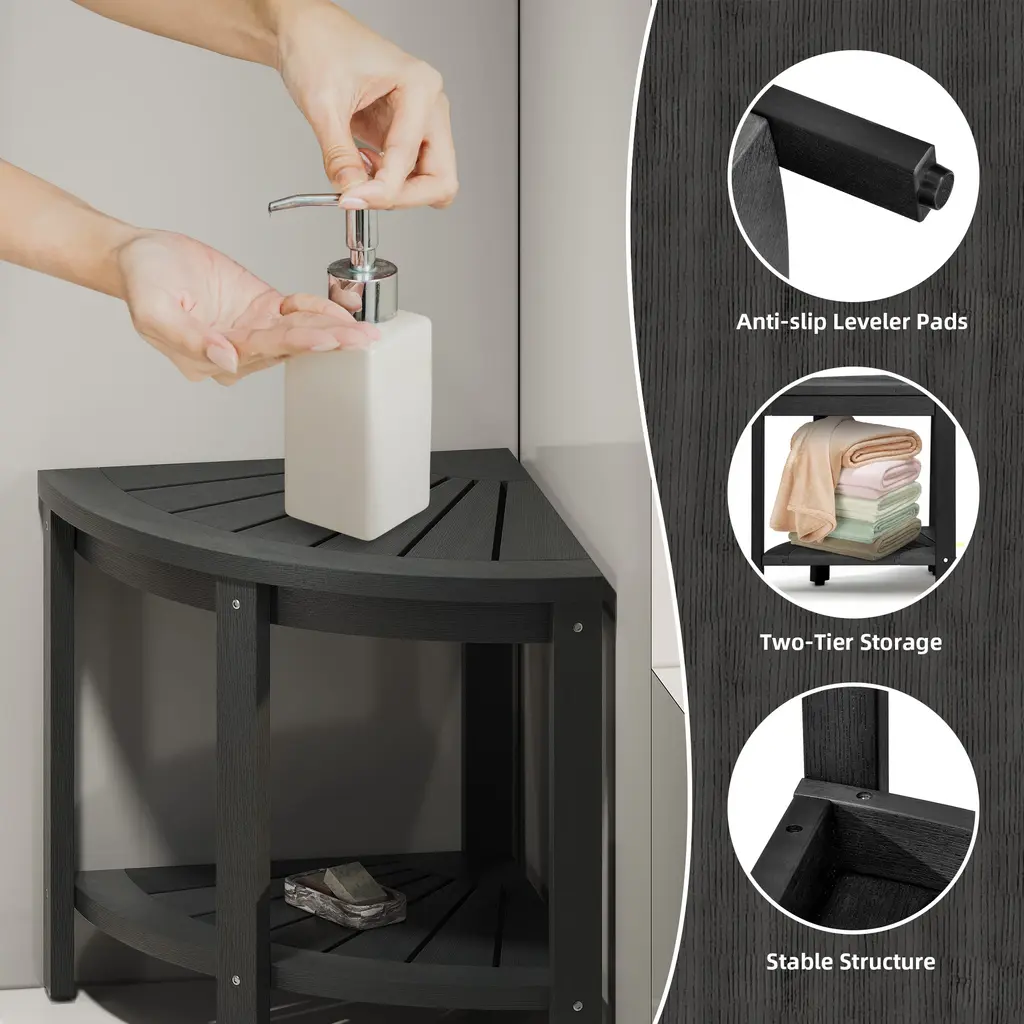 Lumber Shower Bench 18" Shower Stool Corner Bench With Storage Shelf Shower Seat - Black