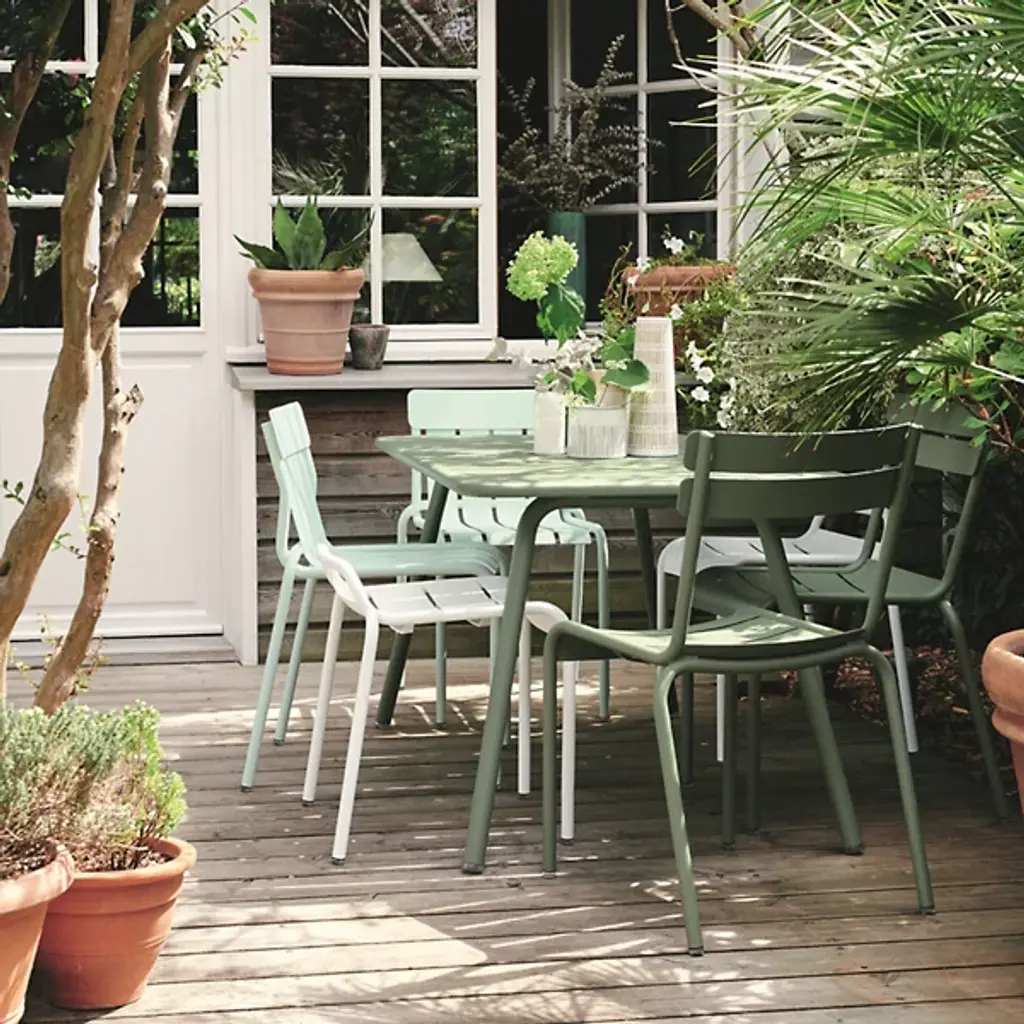 Smooth and stylish supplemental seating. The Luxembourg Stool - Set of 2 by Fermob is a pair of lightweight and low-profile pieces, always at the ready should you ever need room for a couple more around a dining table or lounge area. Each seat is made of aluminum slats, which are curved just so for maximum comfort. And the tubular aluminum frame ensures the stool’s durability and convenience, with a low backrest that doubles as a carrying handle. Designed by Frederic Sofia.