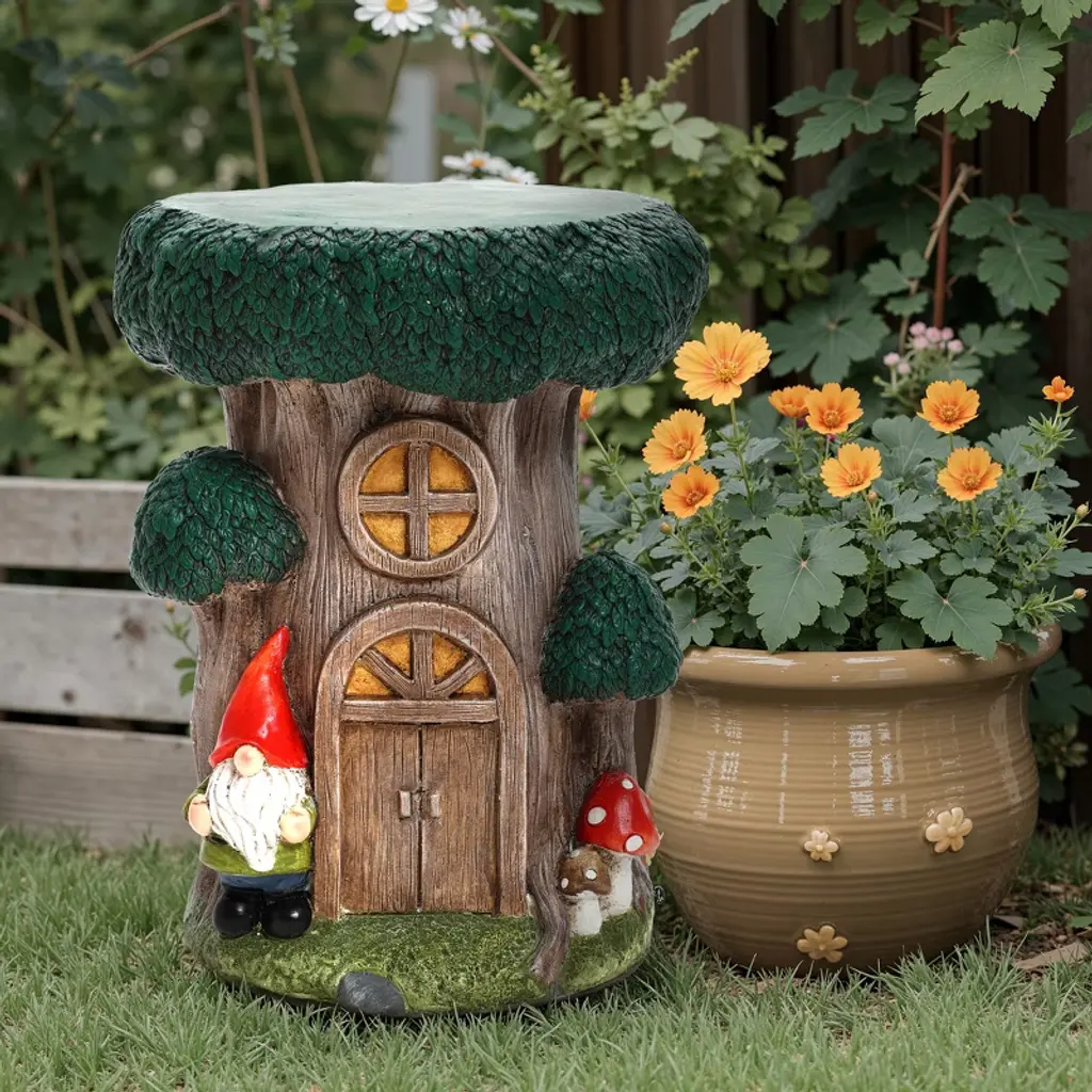 Imagine adding a touch of whimsy and charm to your indoor or outdoor space with this delightful gnome tree house accent piece. Crafted from durable and weather-resistant magnesium oxide (MgO) material, this multifunctional table is designed to bring a fairy-tale magic to your garden, patio, or living room. It features intricate details, including a friendly gnome and tiny mushroom accents, making it both functional and decorative. Standing at 16.9 inches tall and measuring 12.6 inches across, this versatile table provides plenty of surface space for holding a potted plant, a book, or your favorite drink. What's more, it comes fully assembled and ready to use straight out of the box.