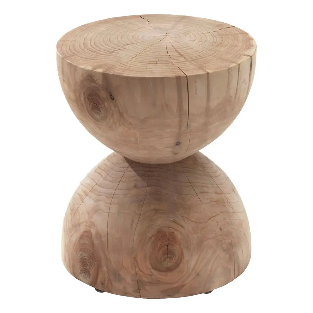 The Origin is a sculptural modern organic side table turned from a solid block of macrocarpa (Monterey Cypress). The wood is finished with a hand rubbed, low V.O.C., natural plant oils to bring the gorgeous grain to life. We make timber furniture beautifully crafted by artisan furniture-makers, to produce contemporary pieces to last generations. We immerse ourselves in our natural environment and take design cues from nature. At Tréology, we don’t design our pieces; nature does that for us. We simply appreciate the natural form of timber and craft it into a contemporary piece.The macrocarpa wood will continue to dry out as it finds its equilibrium moisture content of its new environment. Further movement and splits should be expected, and this is part of the wabi-sabi design of the Origin side tables.Measures: Diameter 15” x H18”Diameter: 380mm x H460mmWood Macrocarpa (Monterey Cypress)Finish: Natural Low VOC OilCustomization of wood finish & sizing available by request. (subject to up-charge).Handmade in Christchurch, New Zealand.About TréologySUSTAINABILITY We rescue trees from rivers in the wilderness of New Zealand and craft them into beautiful objects that merge the line between luxury furniture & functional art. We love connecting people to nature through our sustainably sourced wood.HERITAGEOur company is built on our 150-year family heritage of luxury craftsmanship. We love collaborating with like-minded people who share our values of guardianship, sustainability and craftsmanship.CRAFTMANSHIPCraftsmanship is a quality that defines a Tréology piece. Our artisan furniture-makers apply skills that have cumulated over a career of crafting natural materials with passion and attention to detail. Our client portfolio includes work for luxury resorts, wineries, art galleries and luxury residential homes. All our furniture is designed and made in Christchurch, New Zealand. NATUREWe make timber furniture beautifully crafted by artisan furniture-makers, to produce contemporary pieces to last generations. We immerse ourselves in our natural environment and take design cues from nature. At Tréology, we don’t design our pieces; nature does that for us. We simply appreciate the natural form of timber and craft it into a contemporary piece to be treasured - now and forever. Created in nature. Crafted by man.