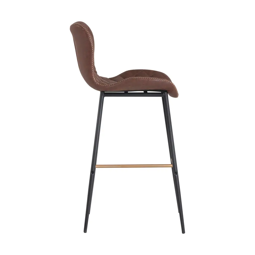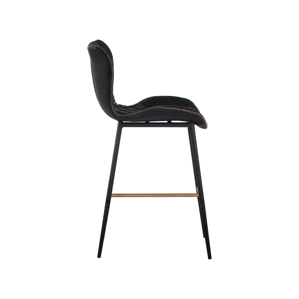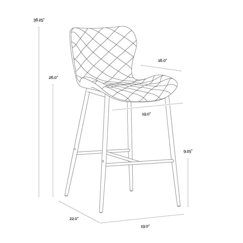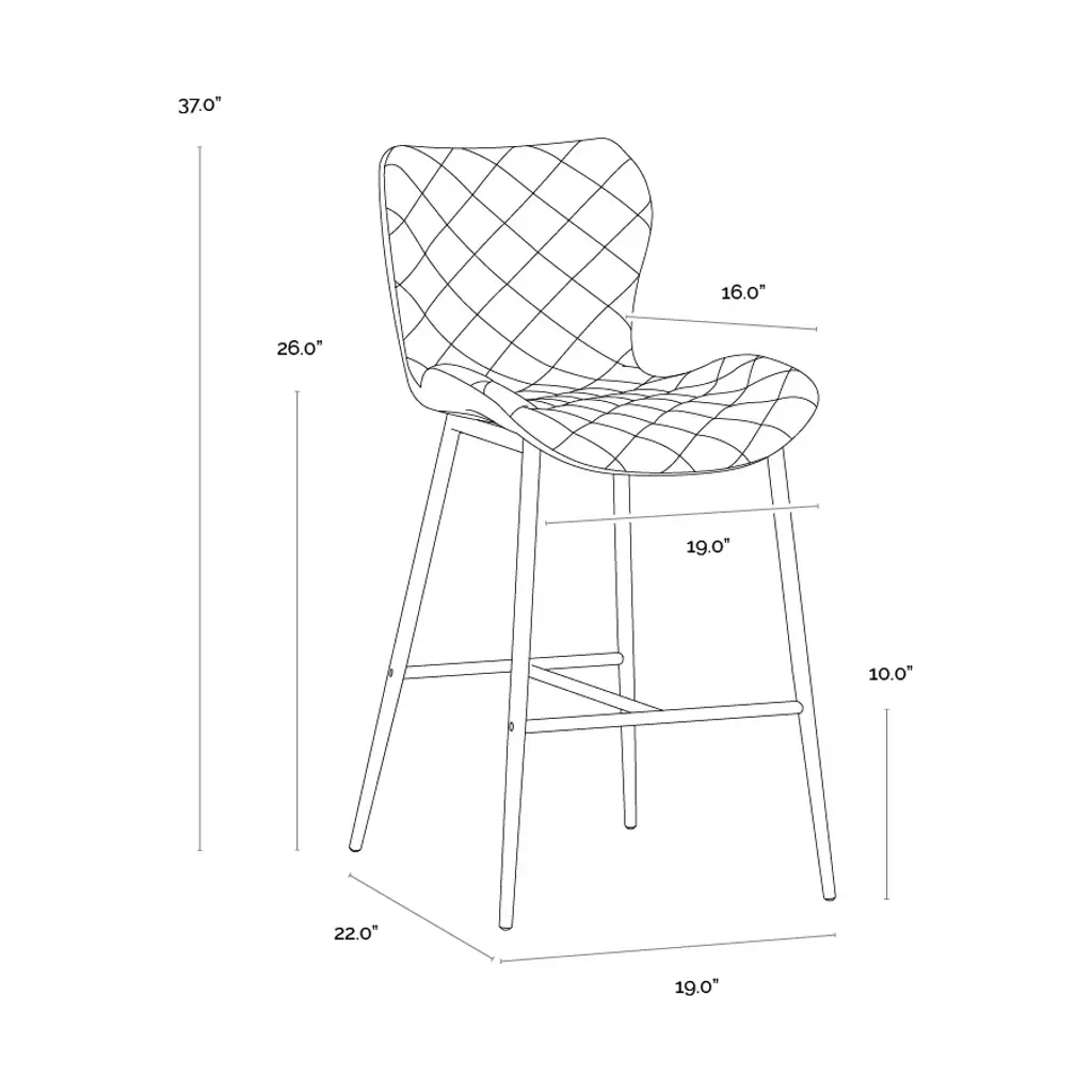 Elevate your dining experience with the Lyla Stool (Set. of 2) from Sunpan Featuring a sculpted diamond-stitched seat, exposed zig-zag stitching, and champagne gold stretchers, this stylish stool exudes elegance. Crafted with faux leather, each piece is unique with appreciated characteristics. Suitable for various spaces, add a touch of sophistication to your home. Highlights