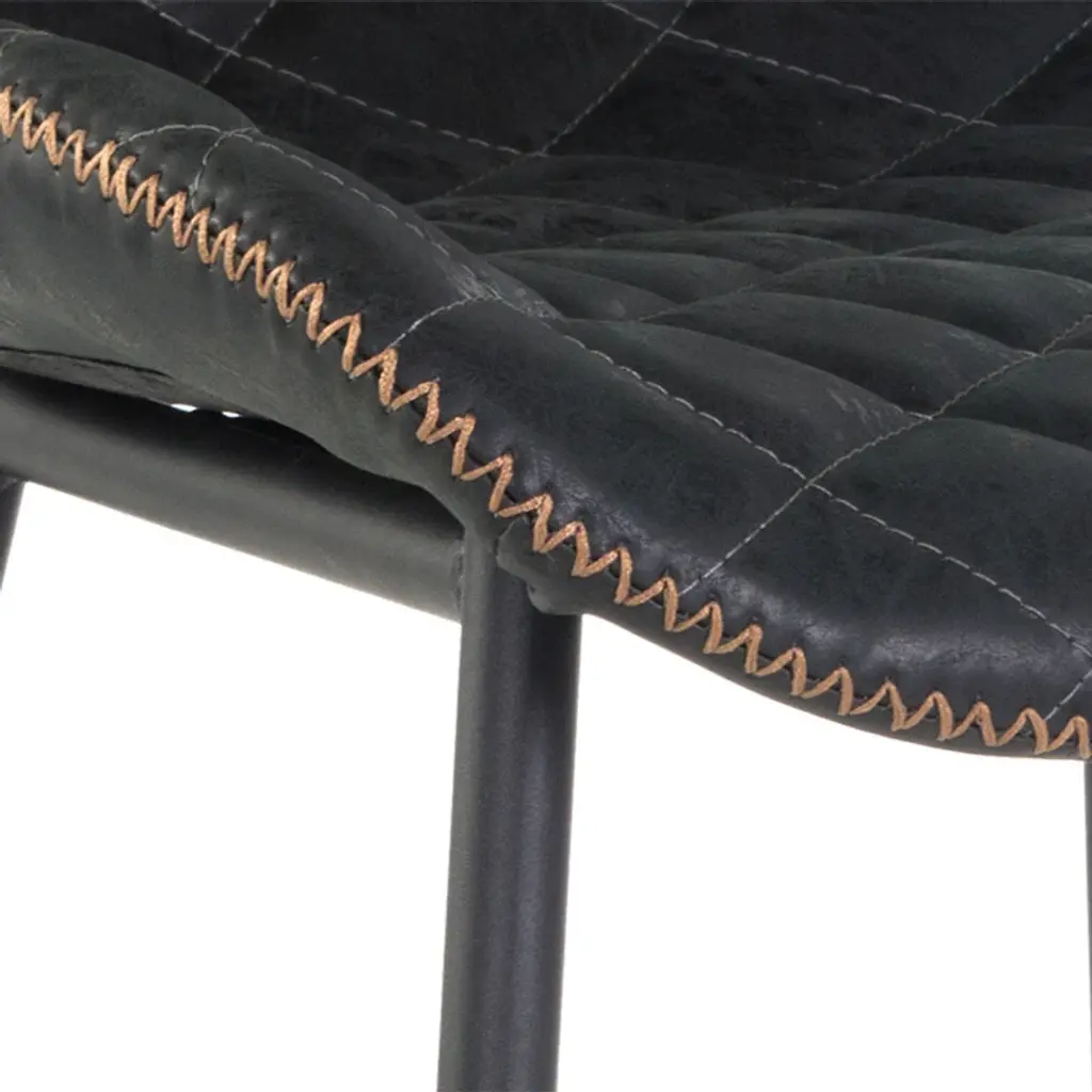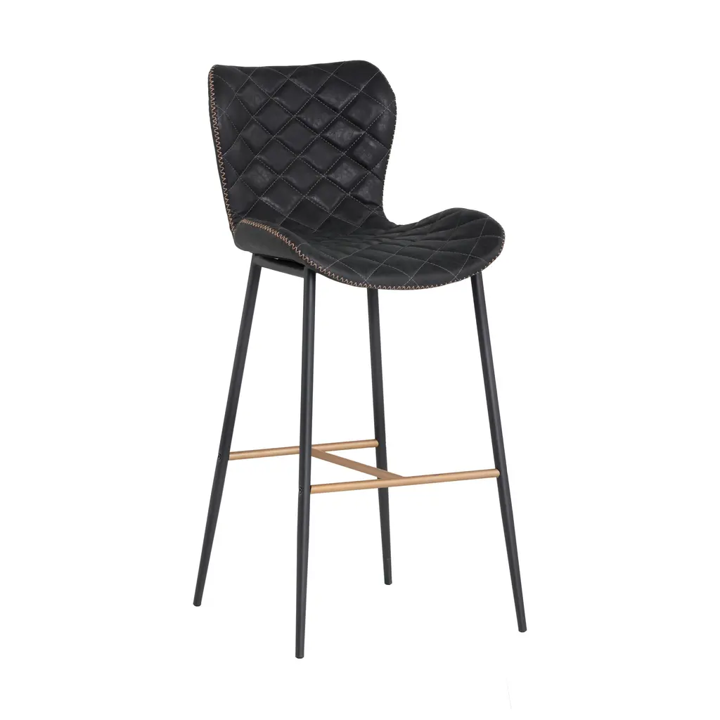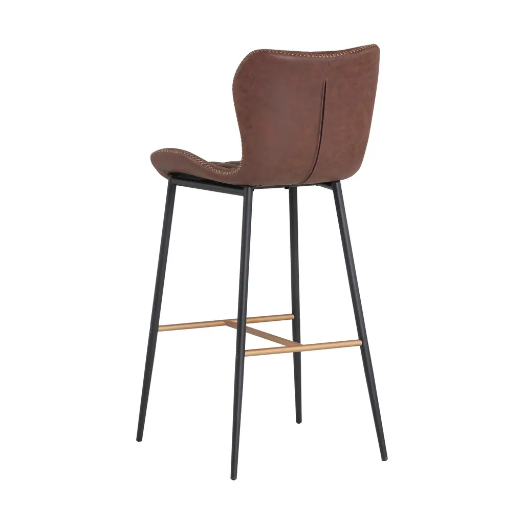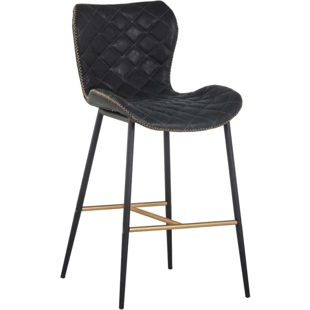 Elevate your dining experience with the Lyla Stool (Set. of 2) from Sunpan Featuring a sculpted diamond-stitched seat, exposed zig-zag stitching, and champagne gold stretchers, this stylish stool exudes elegance. Crafted with faux leather, each piece is unique with appreciated characteristics. Suitable for various spaces, add a touch of sophistication to your home. Highlights