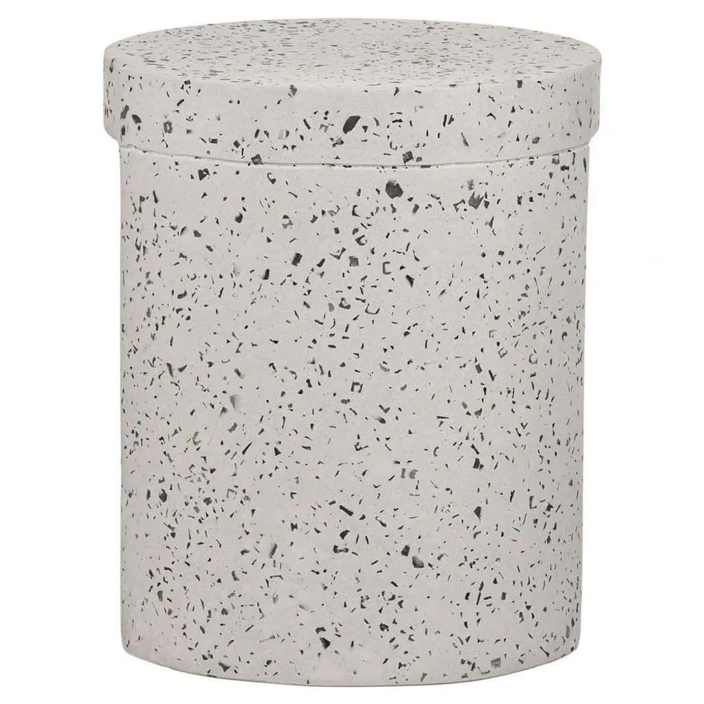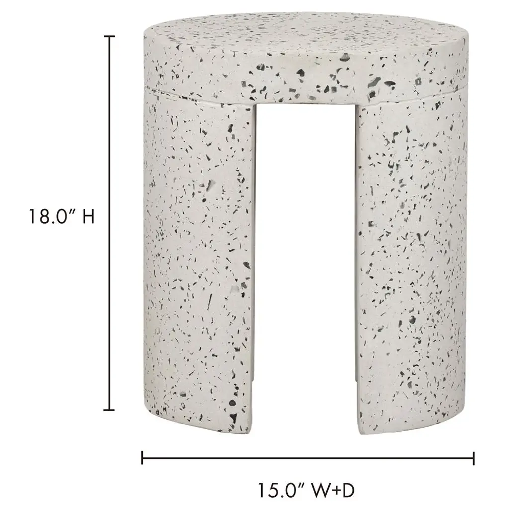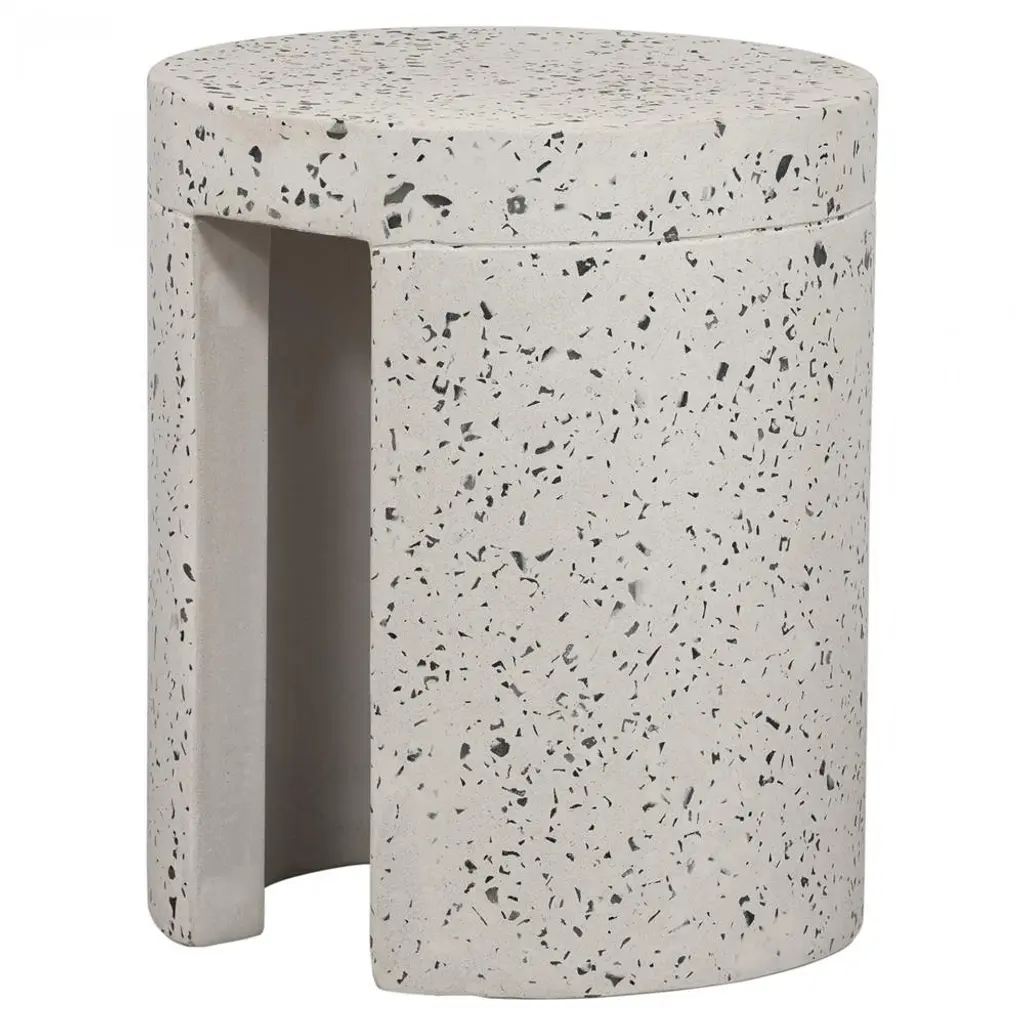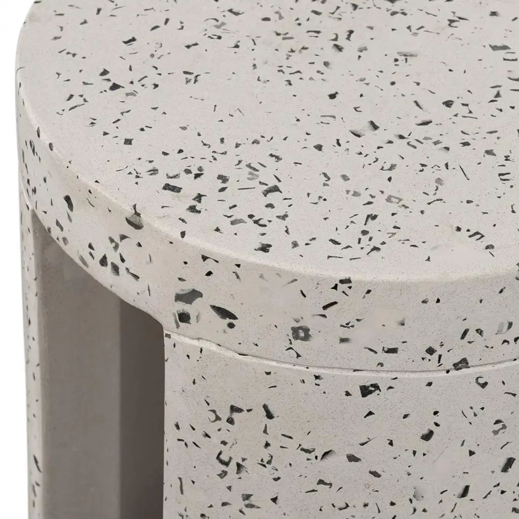 Lyone Coastal Beach White Concrete Grey Terrazo Round Outdoor Stool