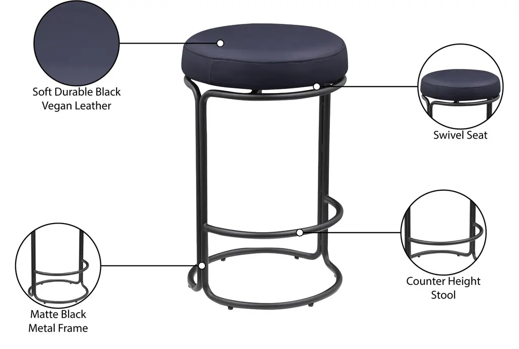 Madison Black Vegan Faux Leather Upholstered Counter Height Stool With Black Finish Set Of 2
