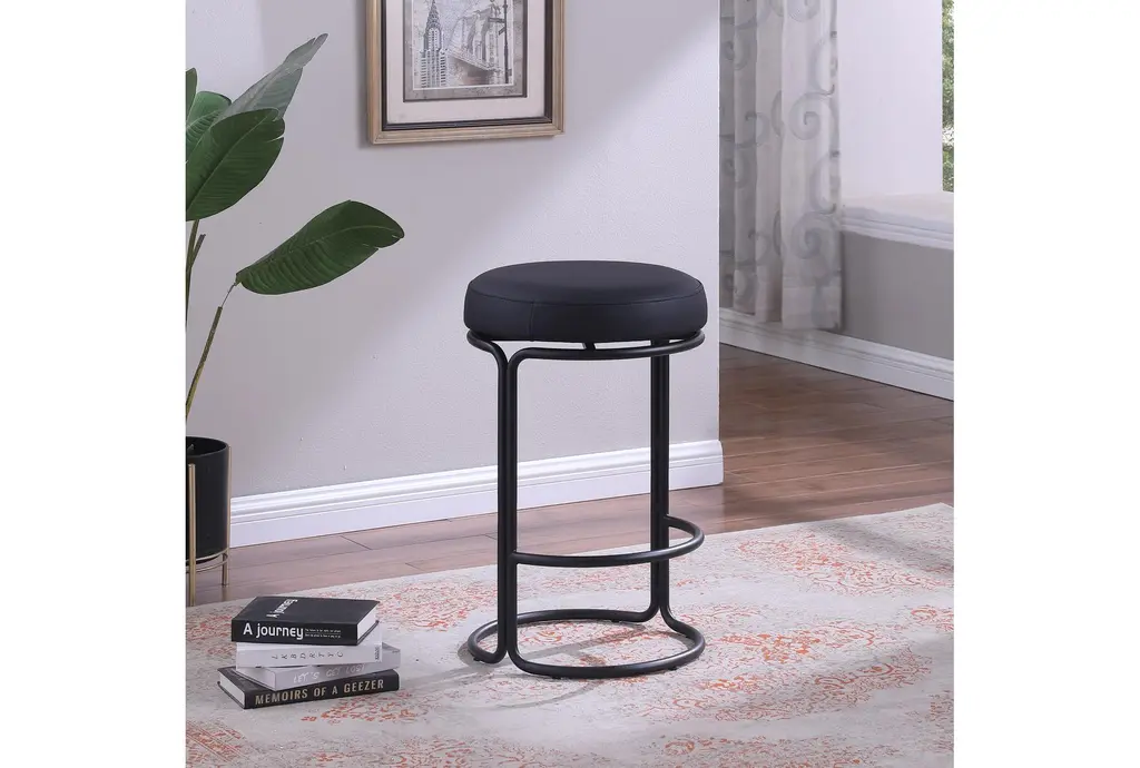 Enhance your dining room with the Madison Black Vegan Faux Leather Upholstered Counter Height Stool. This set of 2 stools is designed for modern spaces, providing both comfort and style with their vegan leather upholstery and iron legs. The tall, cushioned seats offer a cozy spot for enjoying meals and gatherings.