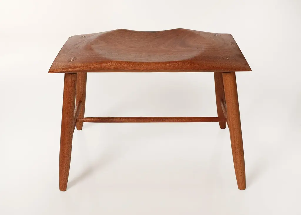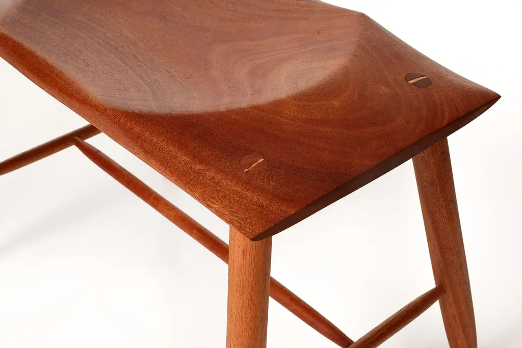 Mahogany turned and carved stool hand-crafted by Michael Rozell, USA - new