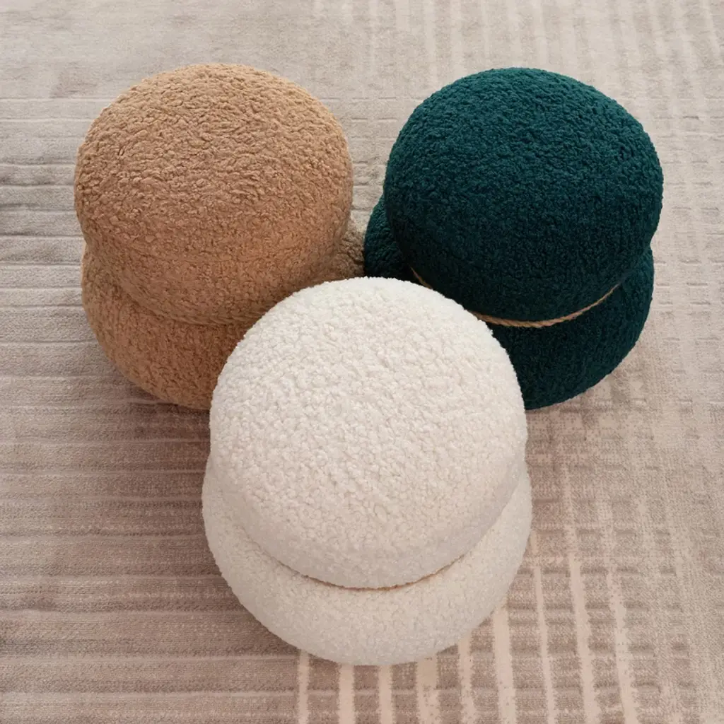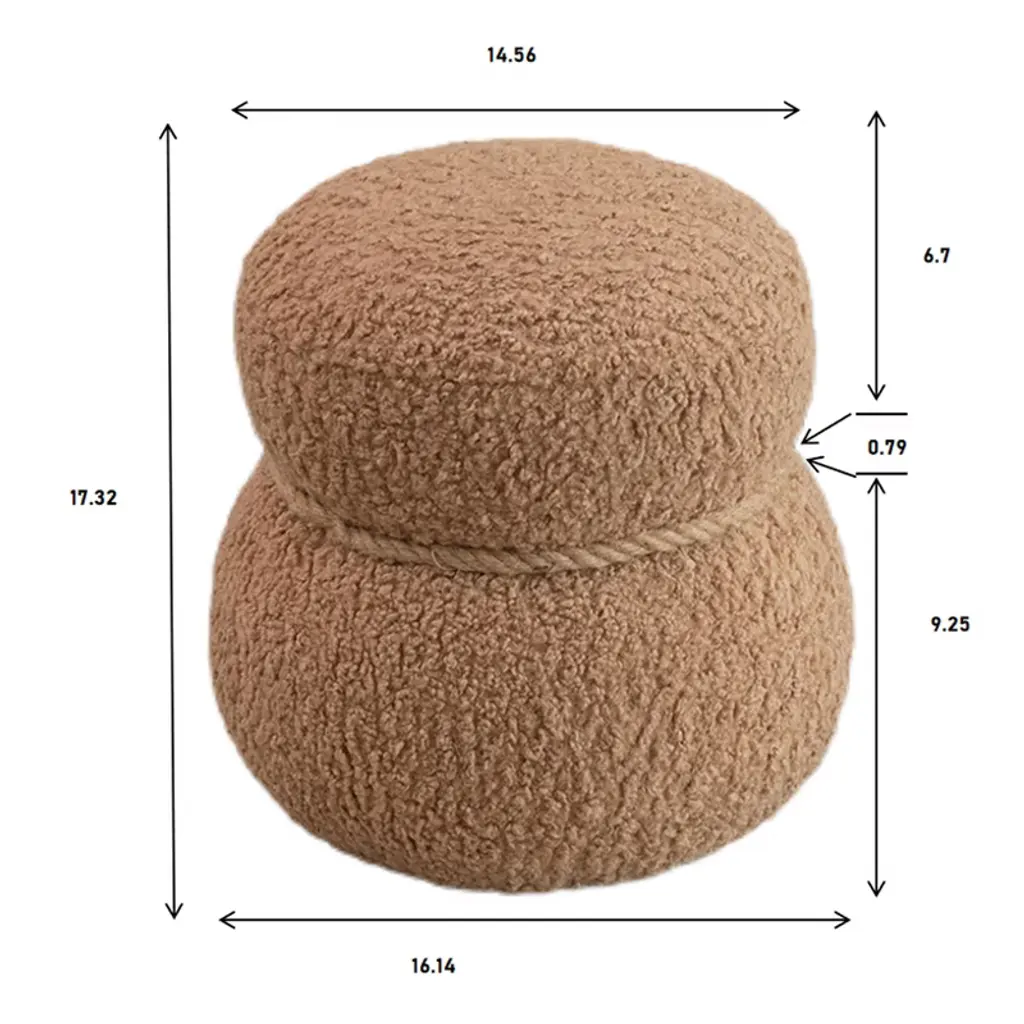 This enchanting white snowman stool combines whimsical charm with practical versatility, featuring a plush Greige lamb wool exterior and a hidden solid wood frame for sturdy support (150lb capacity). Its compact 14.56-inch round design fits seamlessly as a footrest, kids’ seat, or decorative accent, adding playful elegance to nurseries, living rooms, or cozy corners.
