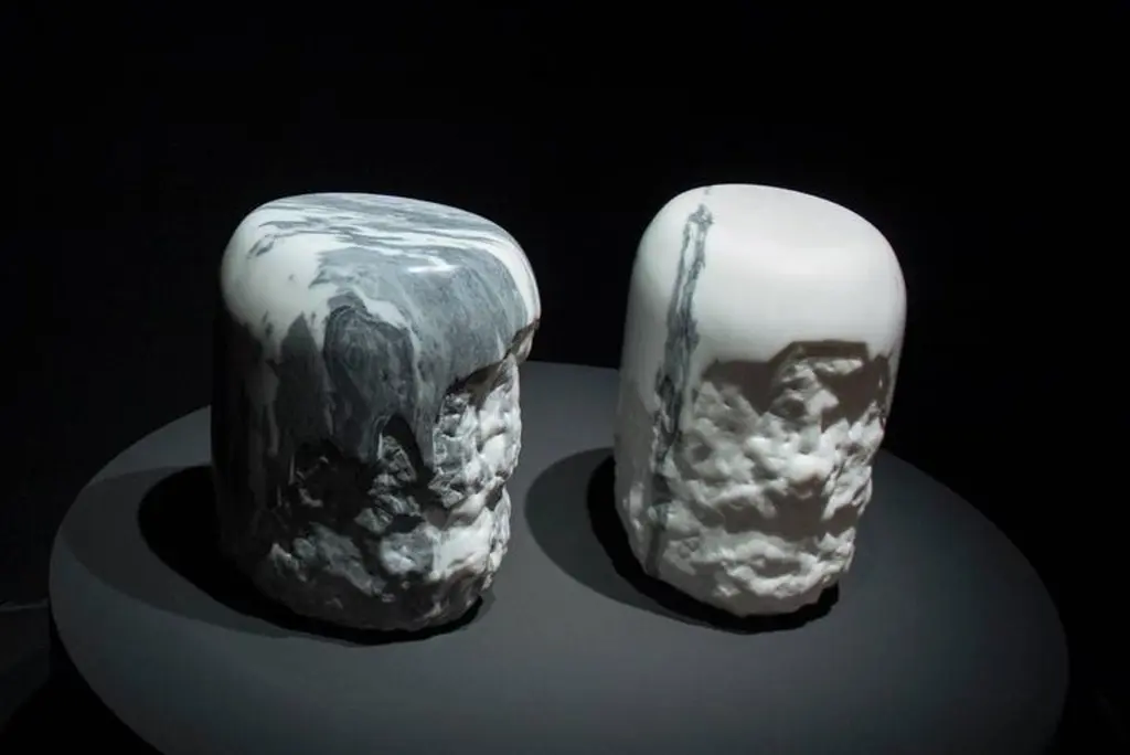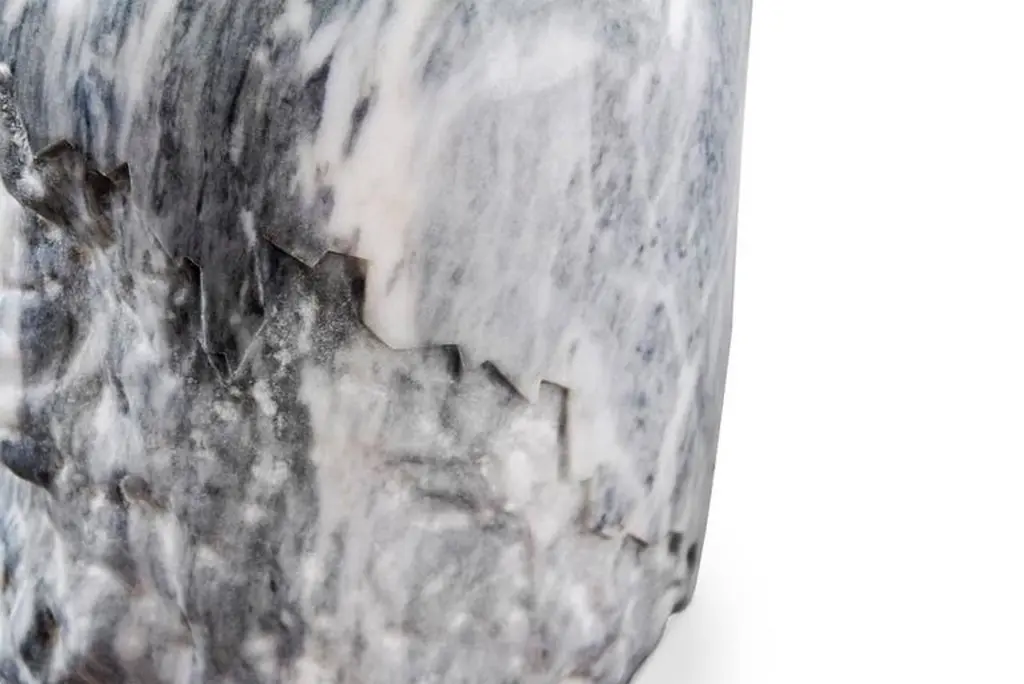 Stool Marble worked in real Carrara marble,hand-sculpted with a stylized line. Each pieceis unique and exceptional. Available in white marble or grey marble, please precise finishingat the moment of your order.Unit price: 6900,00€.