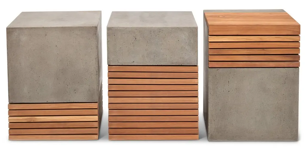 Marty Indoor/outdoor Concrete/teak Two-tone Stool