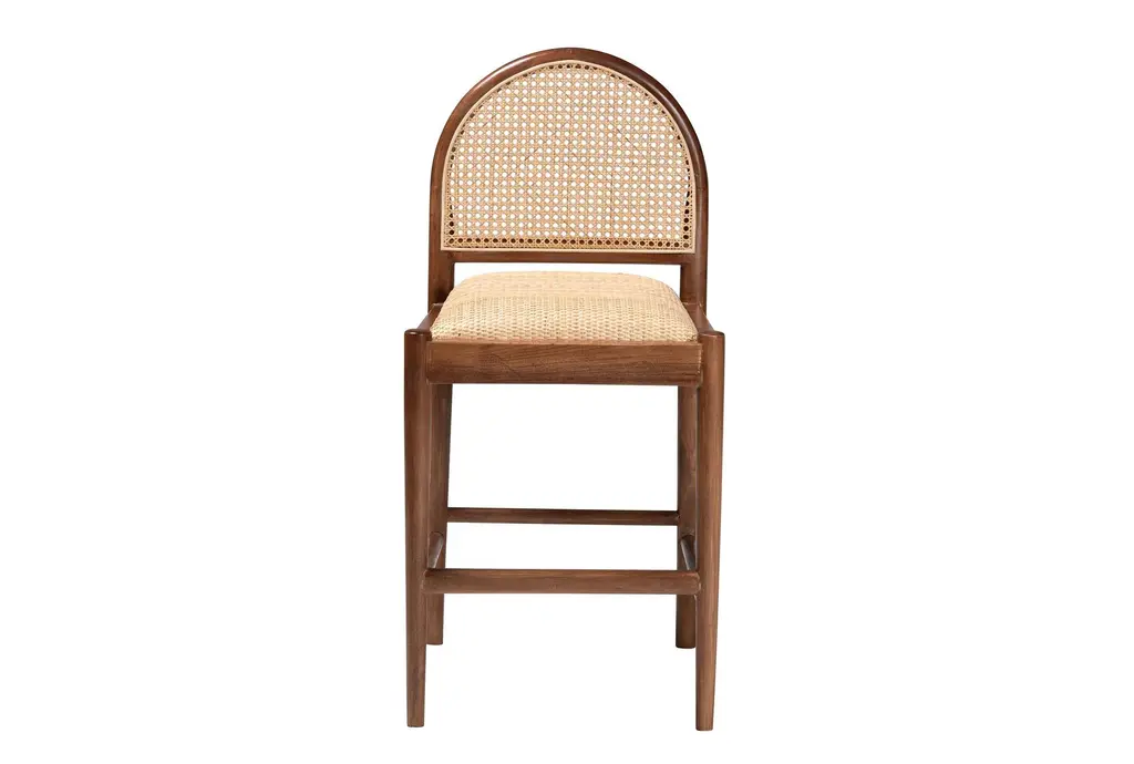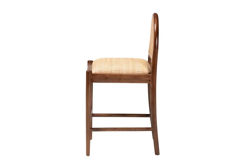 Marylar Modern Bohemian Natural Rattan & Acacia Wood 22.8" Counter Height Stool
