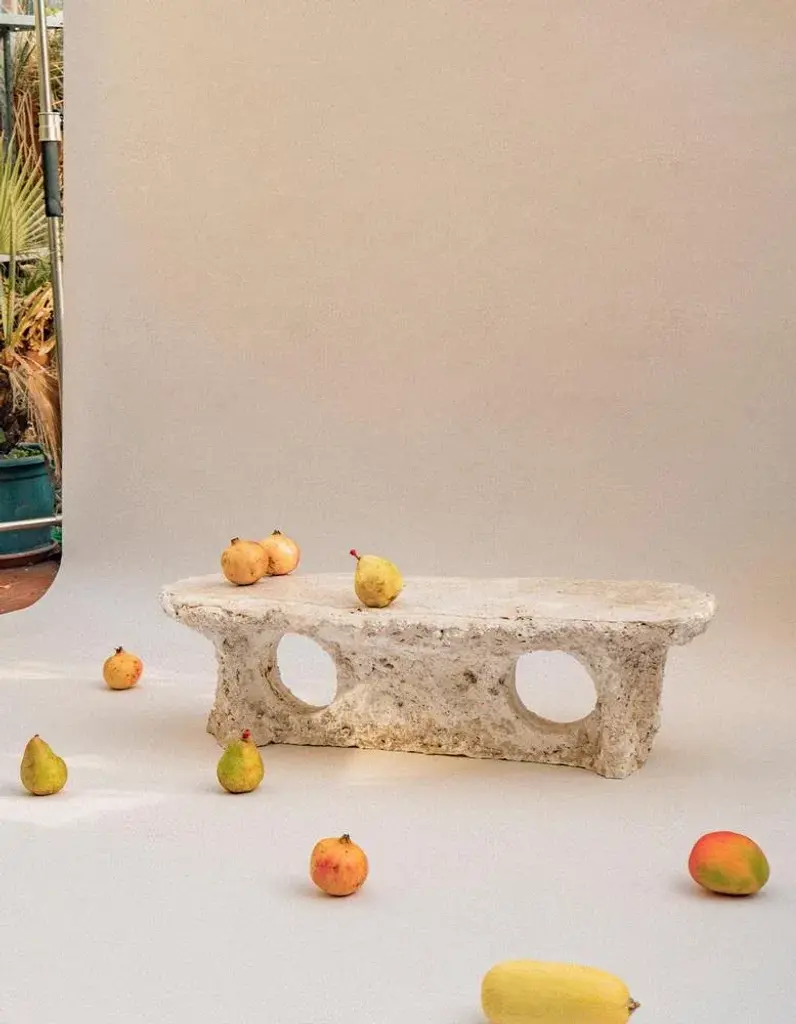 Masa 01 Long Low Stool by Turbina Dimensions: W 100 x D 30 x H 30 cm Materials: Cast Stone