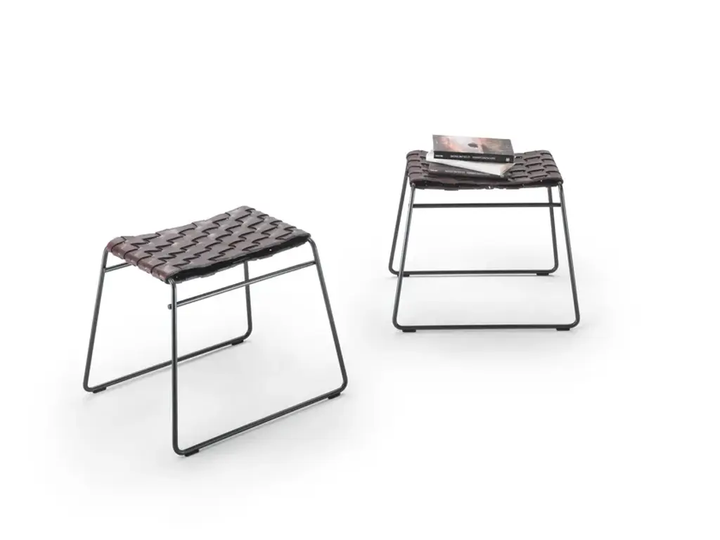 Mate is an exceptional object; it can be used as a table top or as a magazine caddy.In contrast to the rigid metal structure, the upper part is made entirely of pliable hand-woven cowhide.Flexible in serving many different uses, Mate is an elegant and practical accessory that can be ideally placed in any room in the house and confidently paired with all of the seating elements in the Flexform collection.TECHNICAL SPECIFICATIONS:Structure in metal with satin, chrome, burnished, black chrome, or gun metal finish, or in white 100. Woven cowhide in the following colors: black (5005), tobacco (5015), dark brown (5004), extra dark brown (5013)Feet rest on tips made of thermoplastic material.
