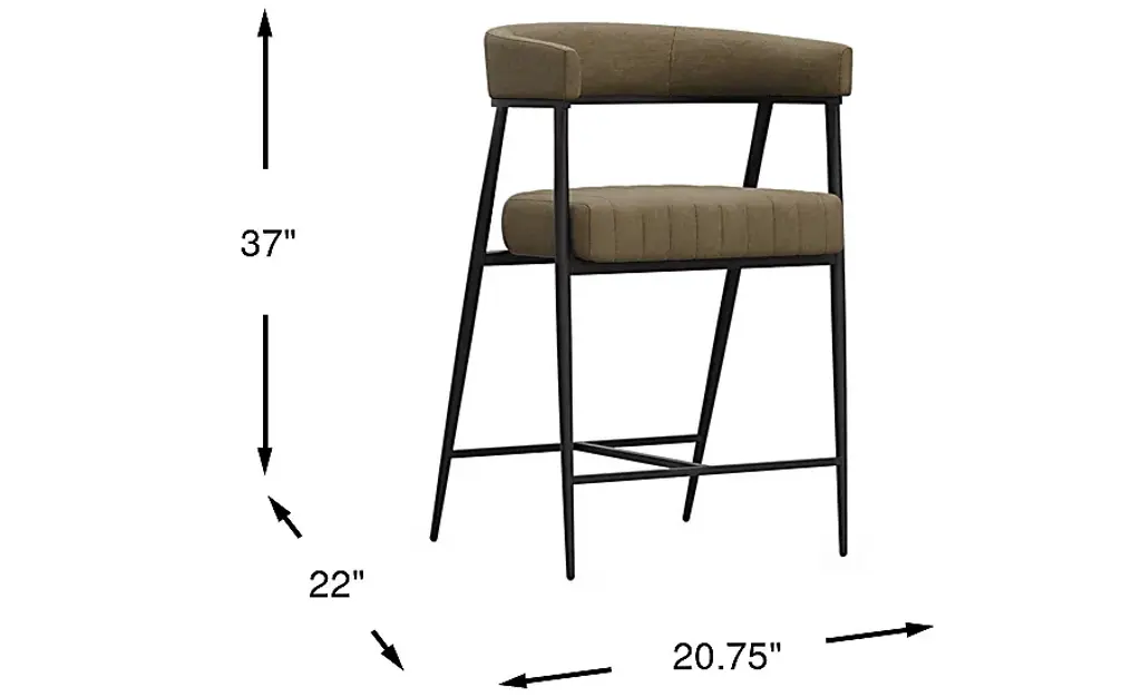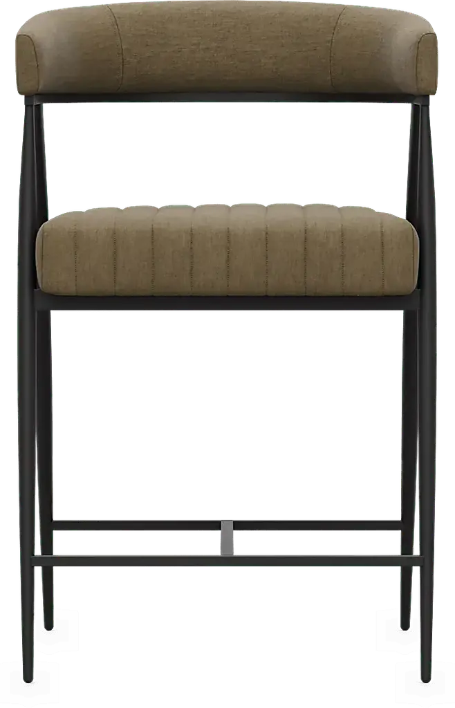 Leaning into cocktail-hour conversations or indulging in at-home relaxation, the Mathis stool is midcentury-inspired contemporary style rendered in graceful metal and velvety green fabric. Four metal legs in black each taper to a point, held steady with stretchers that conveniently function as footrests. The upholstered seat features a wrap-around back and channeled details, providing a touch of softness for those conversations that run long into the night.