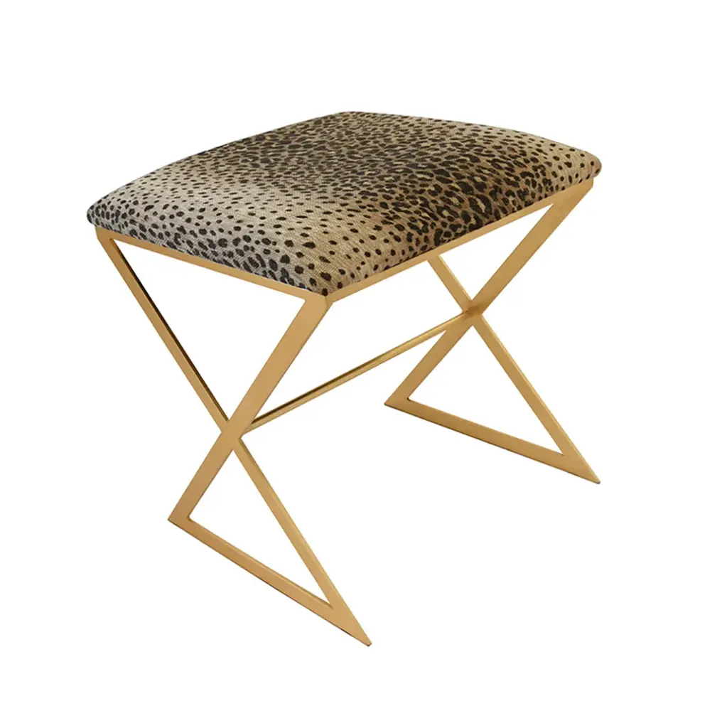Matthew Izzo Home - X Side Stool In Cheetah Velvet Upholstery And Gold Leaf Base