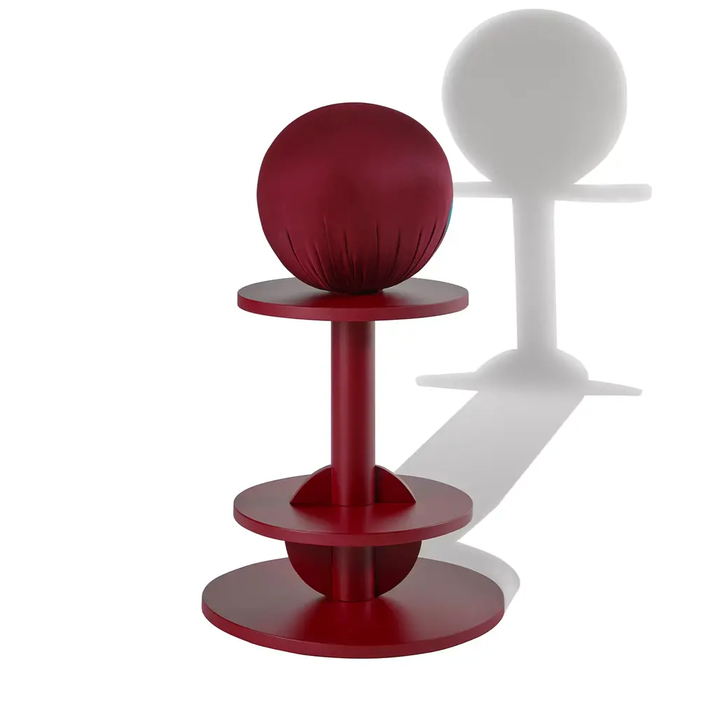 A unique and versatile stool, which may be matched with other elements from the colorful Matto Collection by designer Anna Polisano. Featuring a bright red, solid wood structure topped by a scuba upholstered polyurethane sphere for comfortable sitting, the minimalist silhouette makes it a perfect distinctive accessory for bar or lounge areas in contemporary homes.