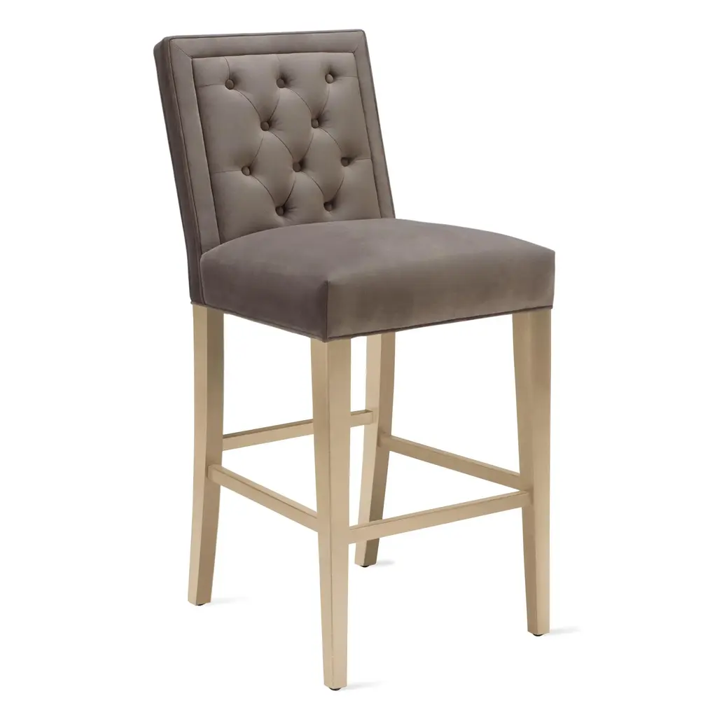 Maxwell, a modern bistro stool, features deep tufts for a more tailored look, making it the perfect option for everyday use. Shown in Bella Velvet Otter.Z Gallerie exclusiveCustomize it! Available in over 10 fabrics, 4 leg finishes, 4 nailhead and ring finishes, as well as the option to have no nailheads and/or no ring pull.Custom Orders: Custom Furniture is manufactured especially for you, which is why we do not accept cancellations, exchanges, or returns.