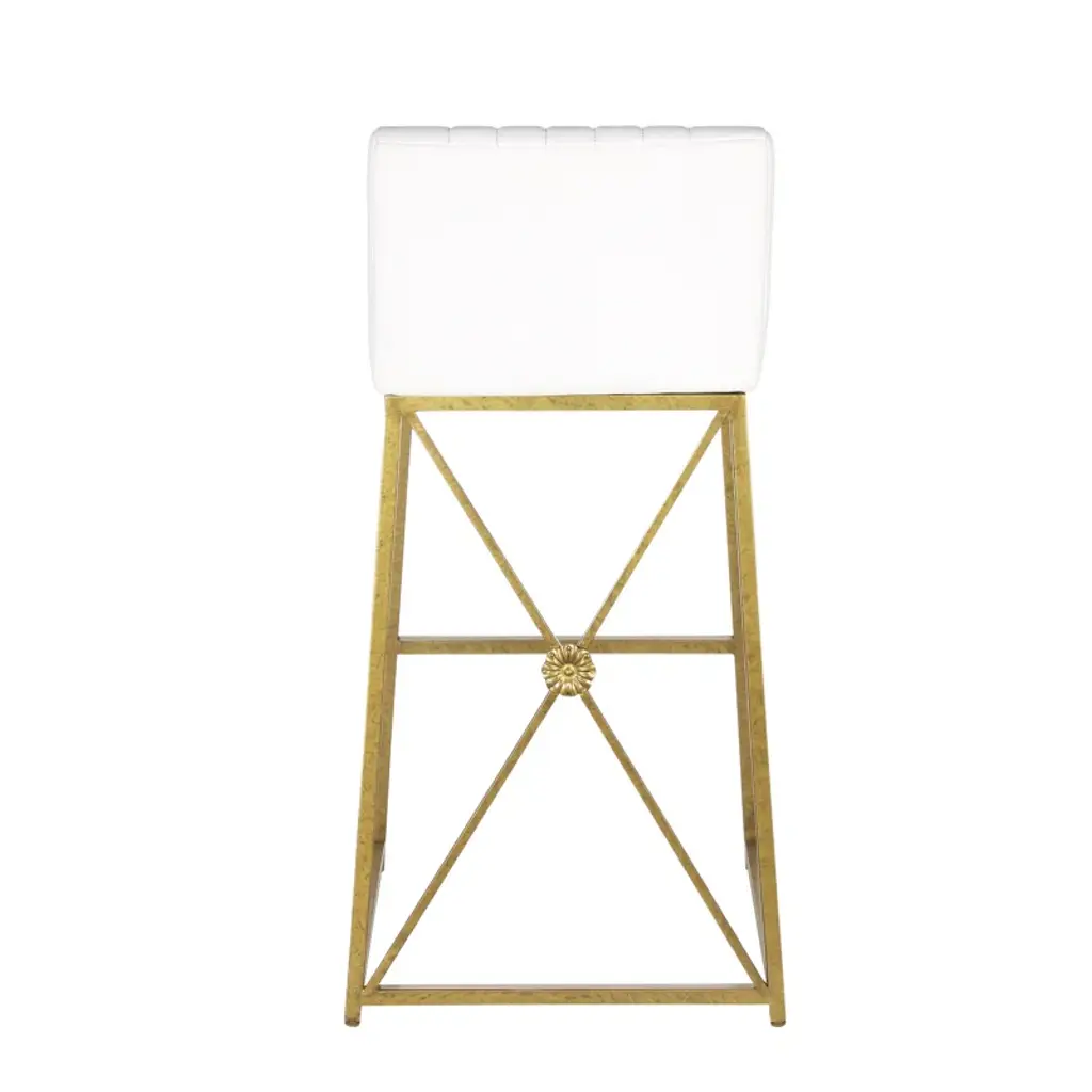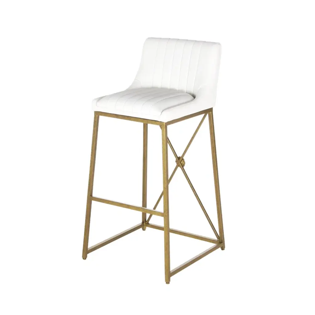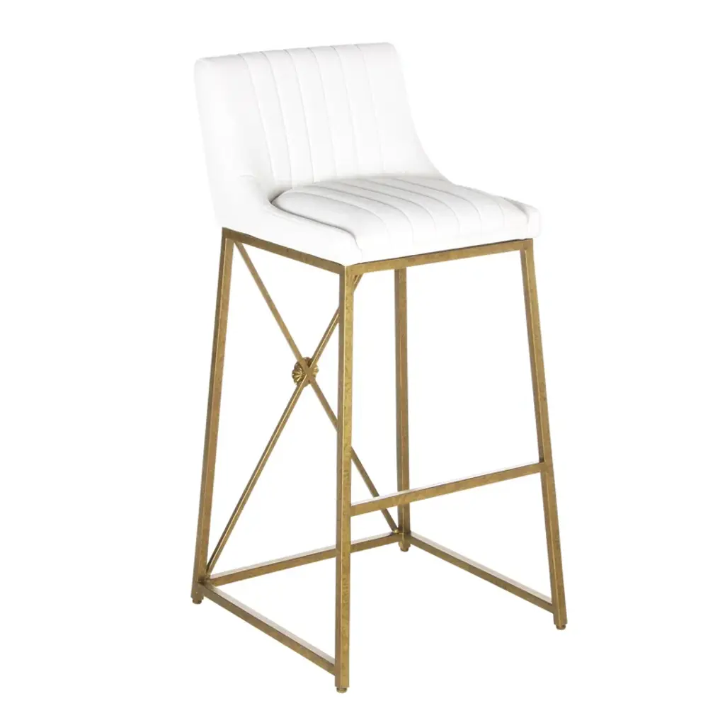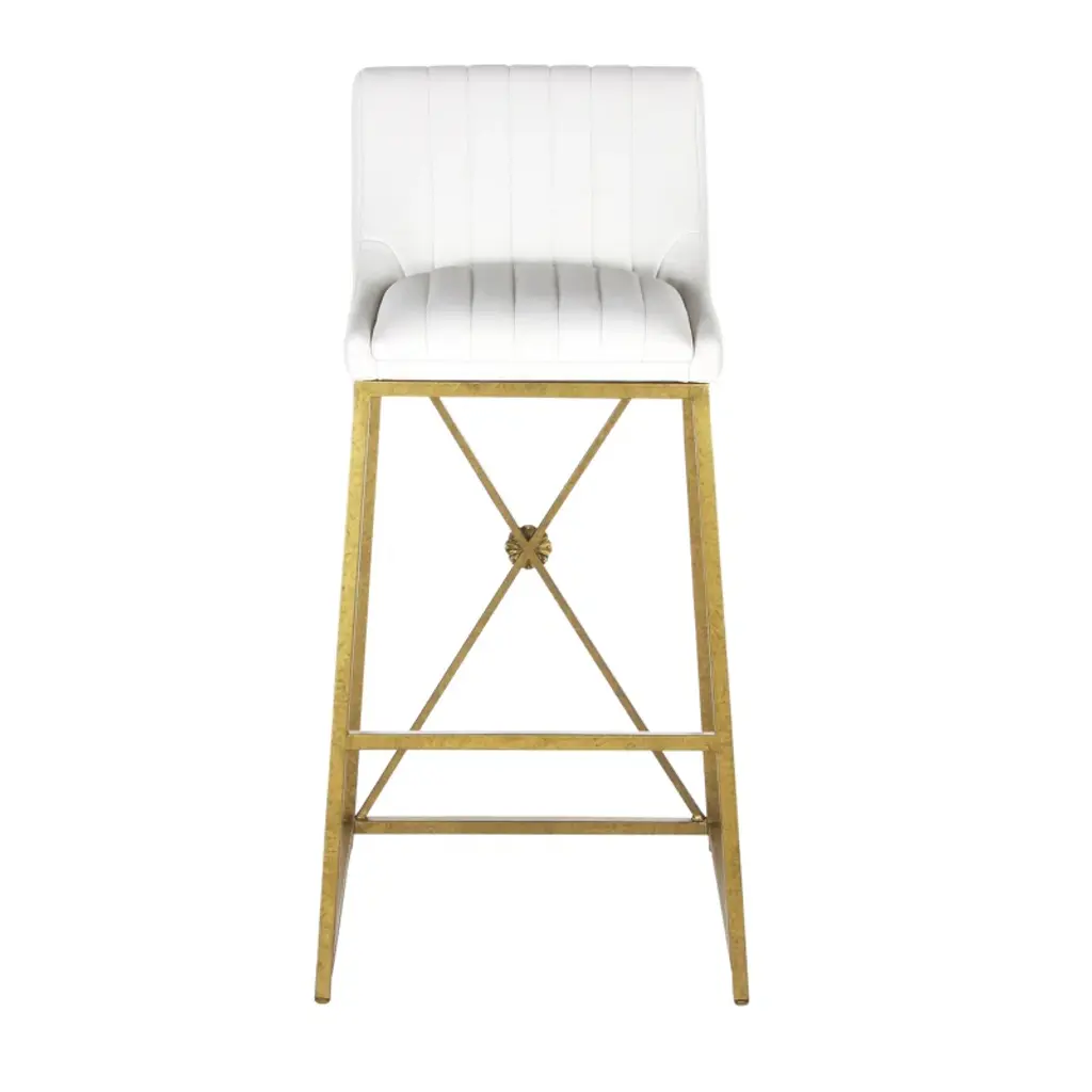 Pull this contemporary stool up to a kitchen island to dine or chat comfortably. Topped with a thick padded cushion, this stool is constructed of a sleek sturdy metal base that flares subtly at the bottom and features a cross-brace support.