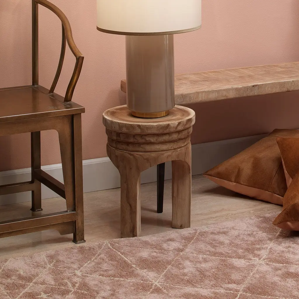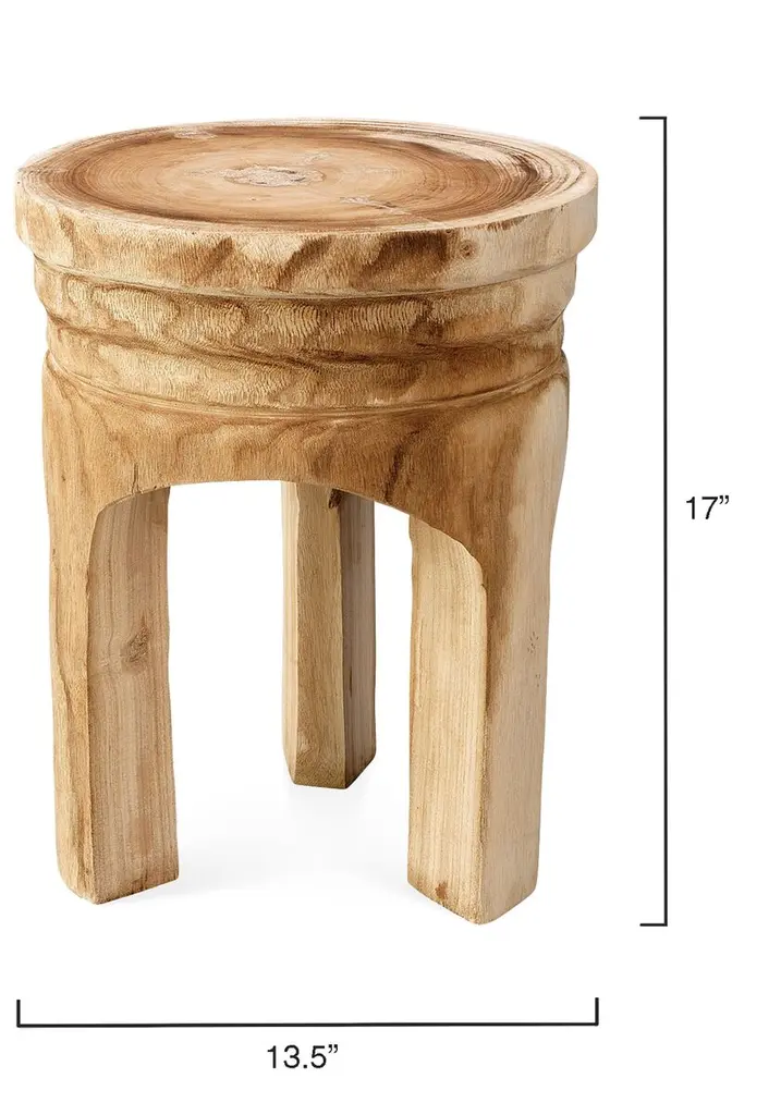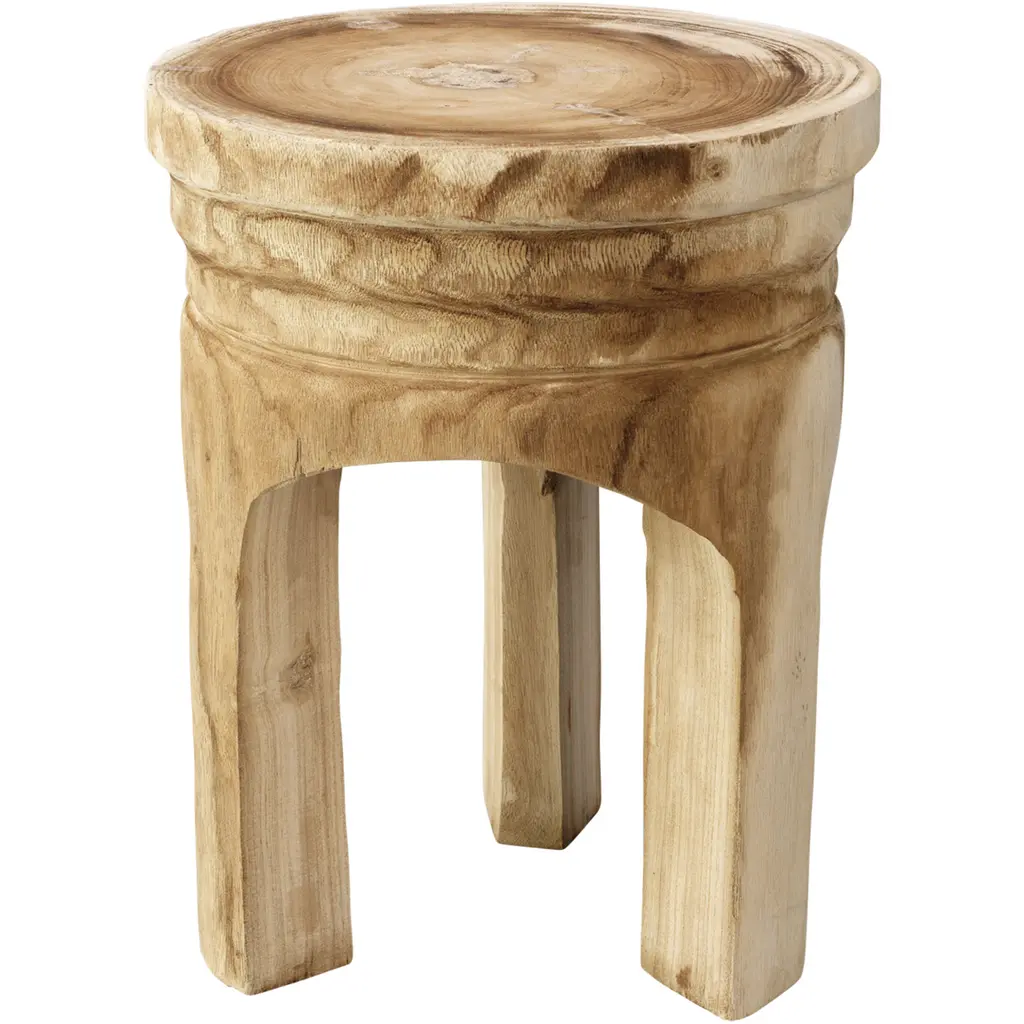Embrace the traditional craft of wood carving with this accent table. Handcrafted from solid Paulownia, its natural grain and raw unfinished surface draws inspiration from the texture of the desert. Lightweight but strong, this piece can multitask as a portable table or as a pedestal for a pile of books or your favorite potted plant.