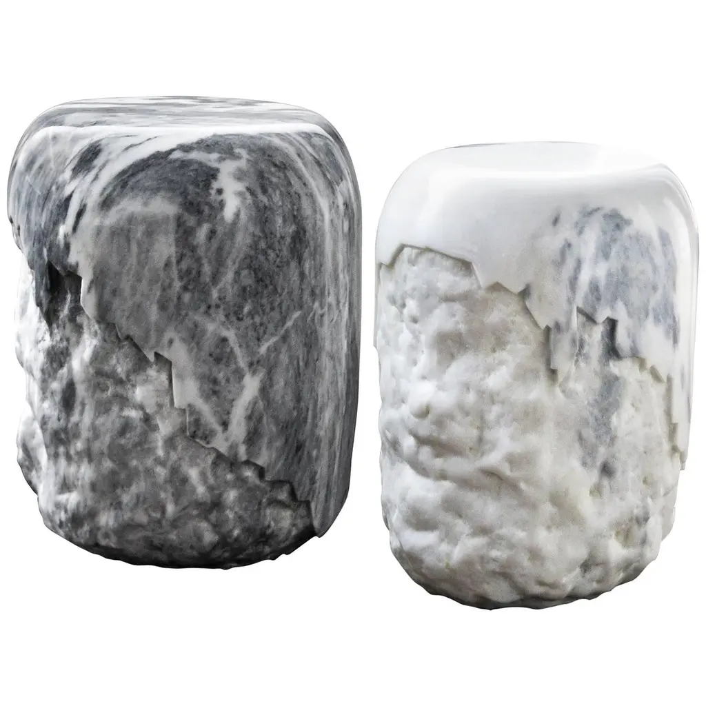 Metal Rock Blue Round Side Table Or Stool Aluminum Foam By Michael Young