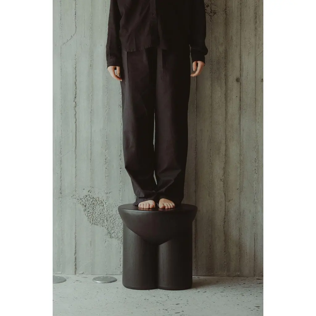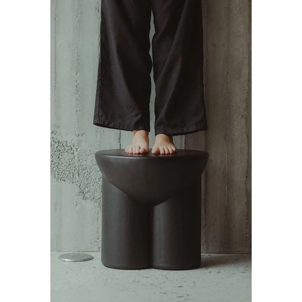 Metate Black Solid Oak Wood Stool By David Del Valle