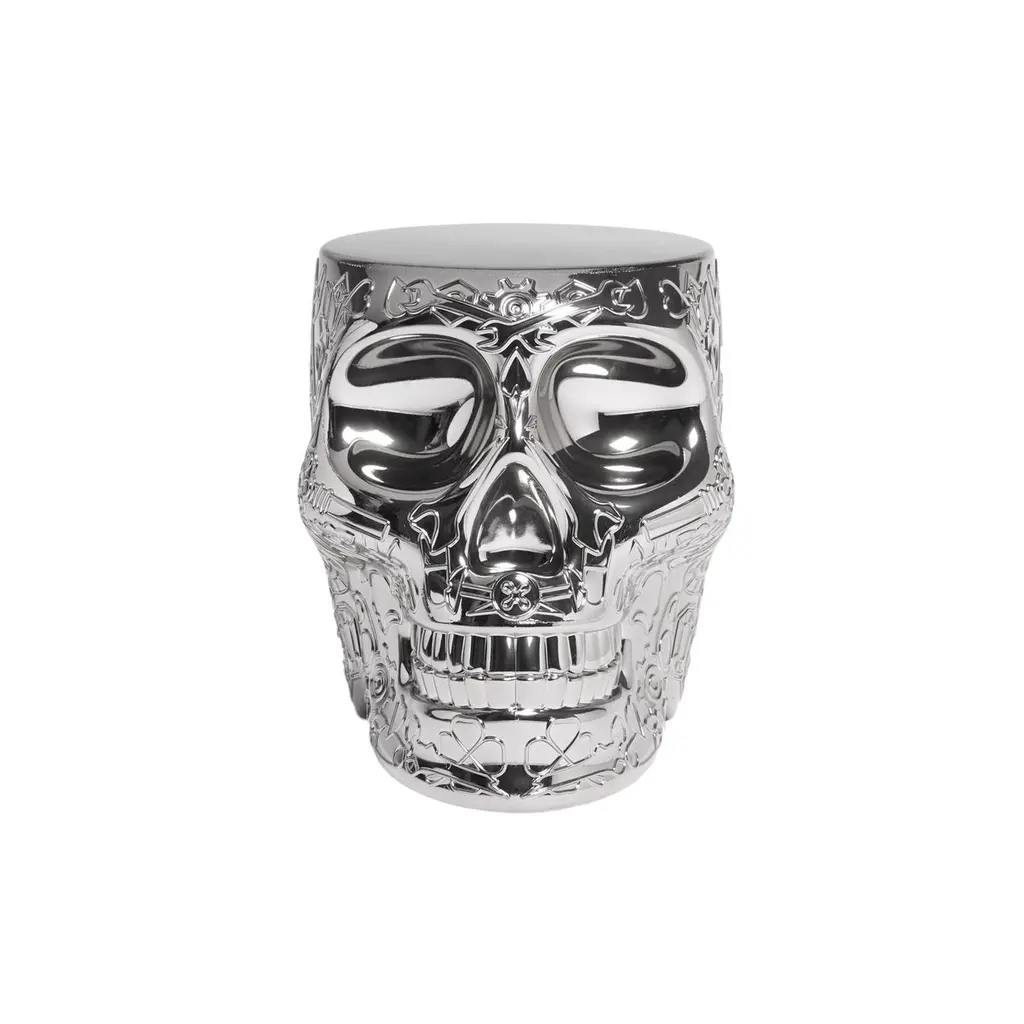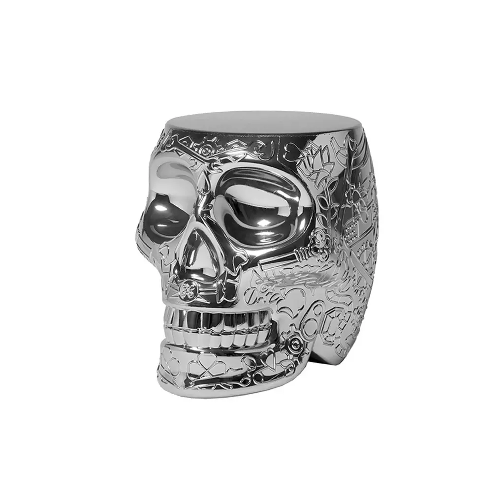 Mexico, Silver Metallic Skull Stool / Side Table By Studio Job