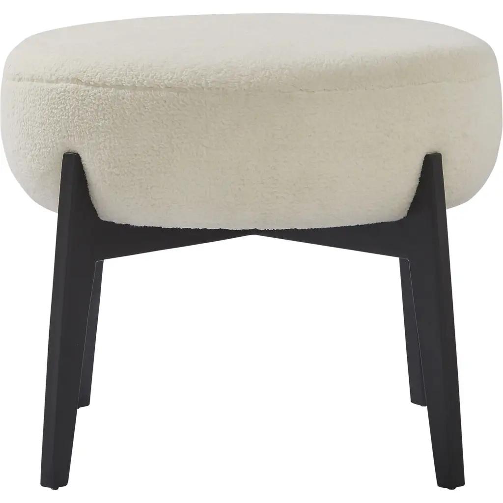 The classic bedroom interior is elevated through function and fashion with this stool. While its white shearling cushion brings a bright, uplifting appeal to the space, its powder-coated iron structure keeps it grounded. Styled with neutral pieces, it integrates into the space while providing a pop.
