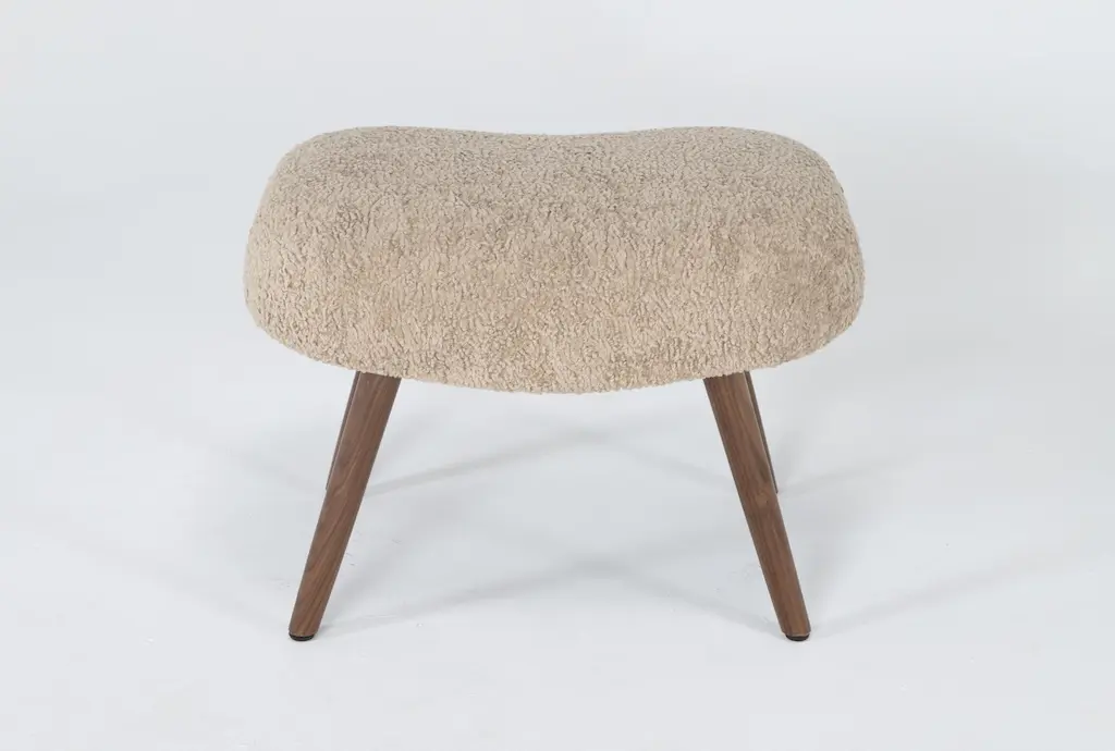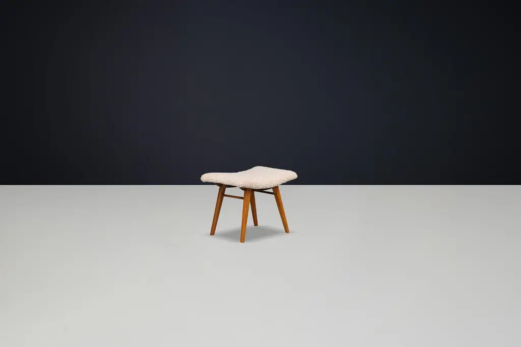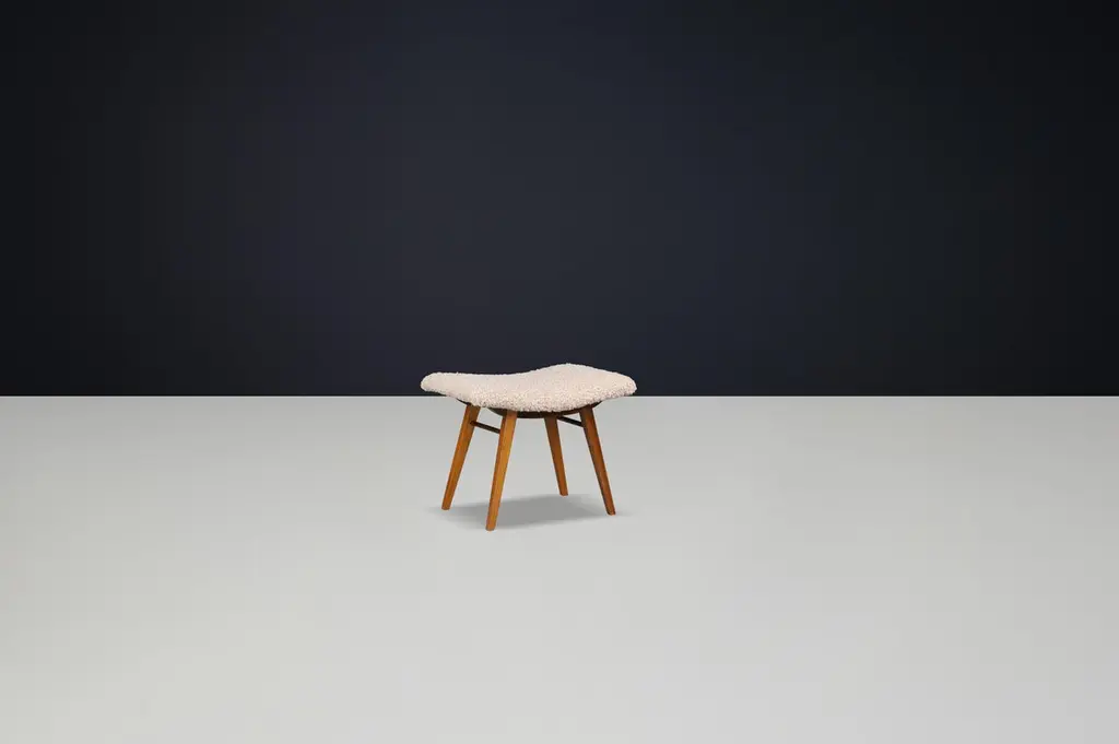 Mid-Century Modern Beechwood Stool & New Teddy Upholstery Czechoslovakia 1960s
