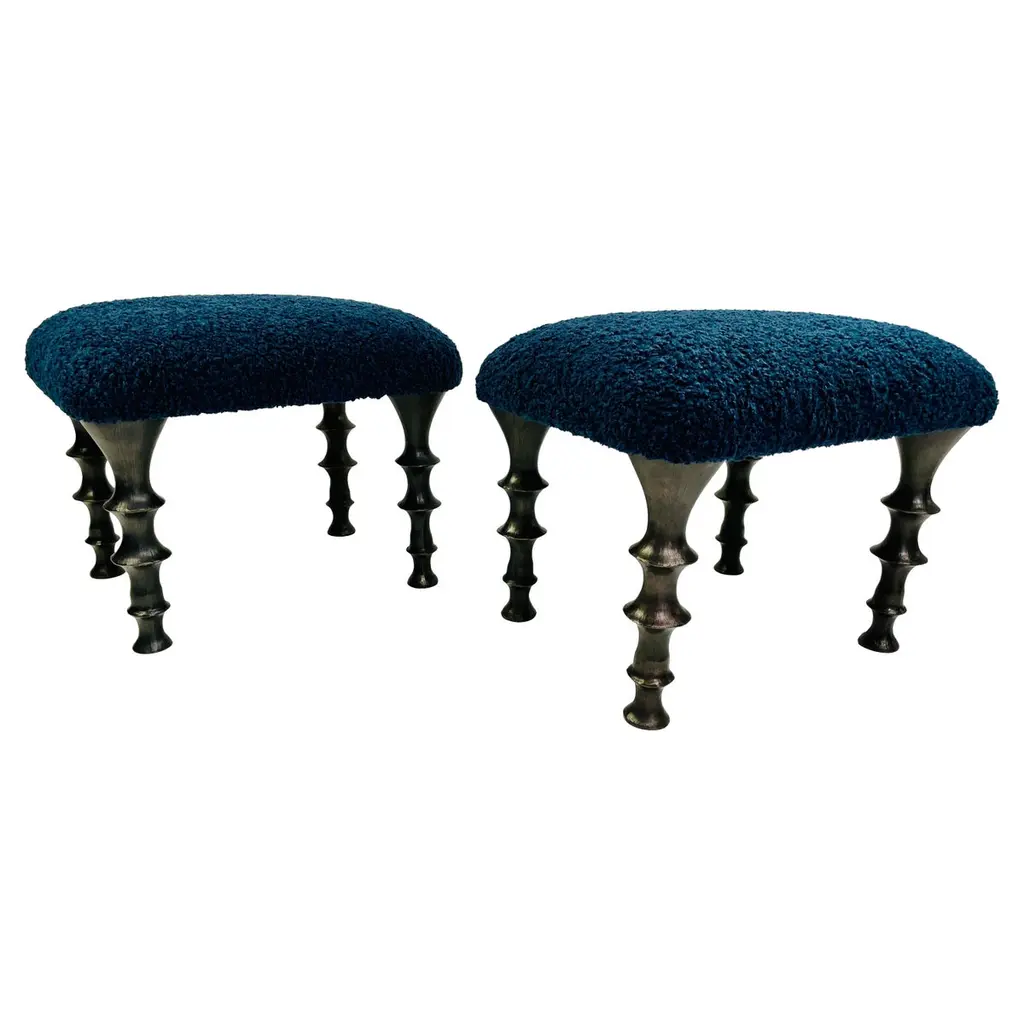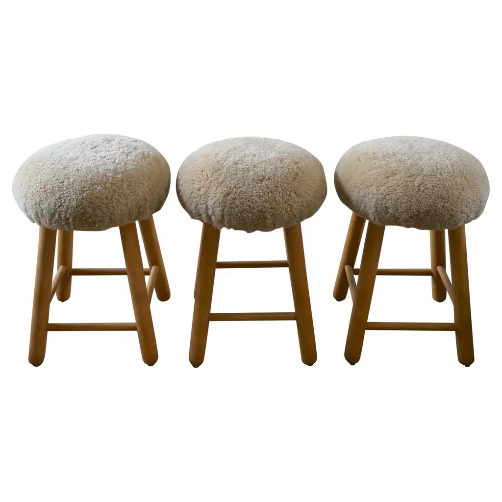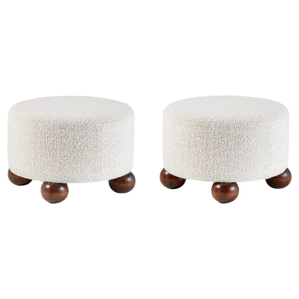 Mid-Century Modern Stool, Oak And White Bouclé Fabric, 1970s.2 Available