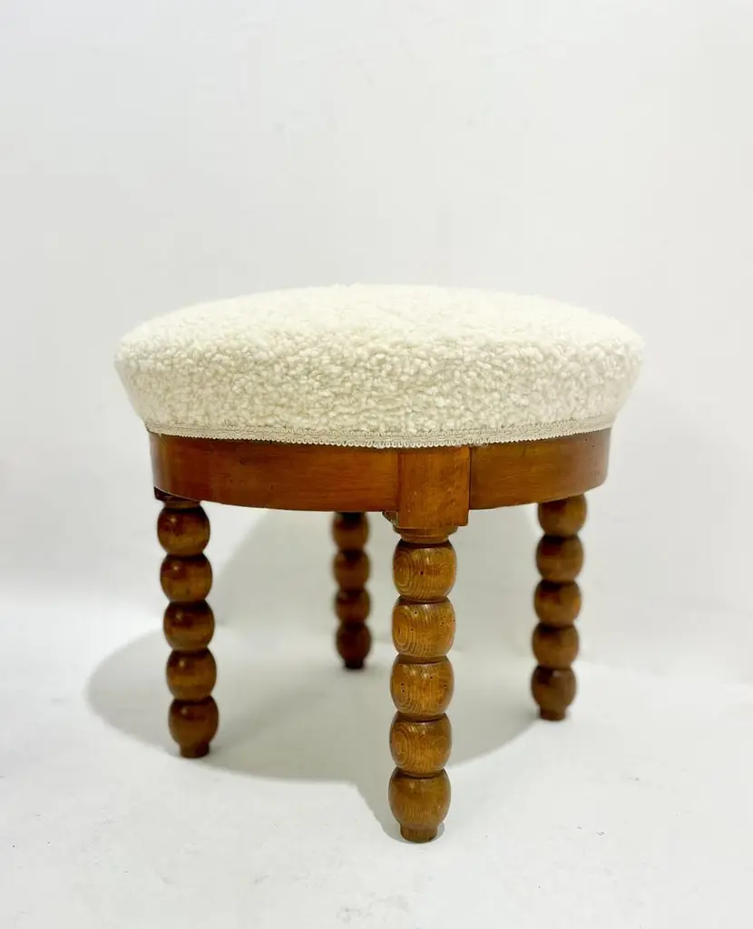 Mid-Century Modern stool, oak and white boucle Fabric, 1970s.2 available