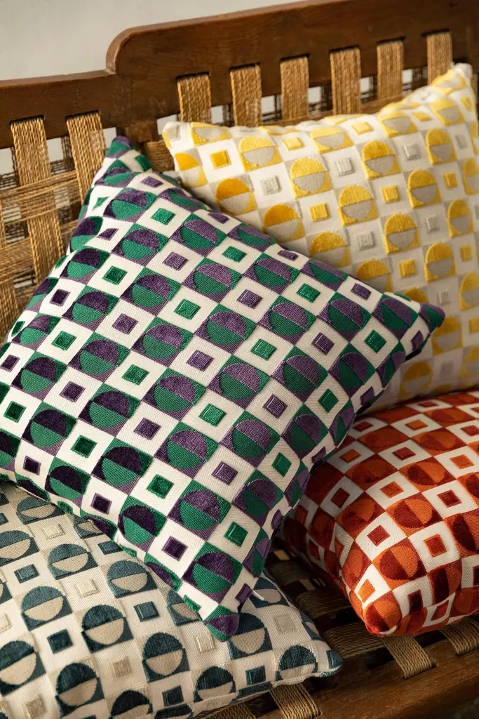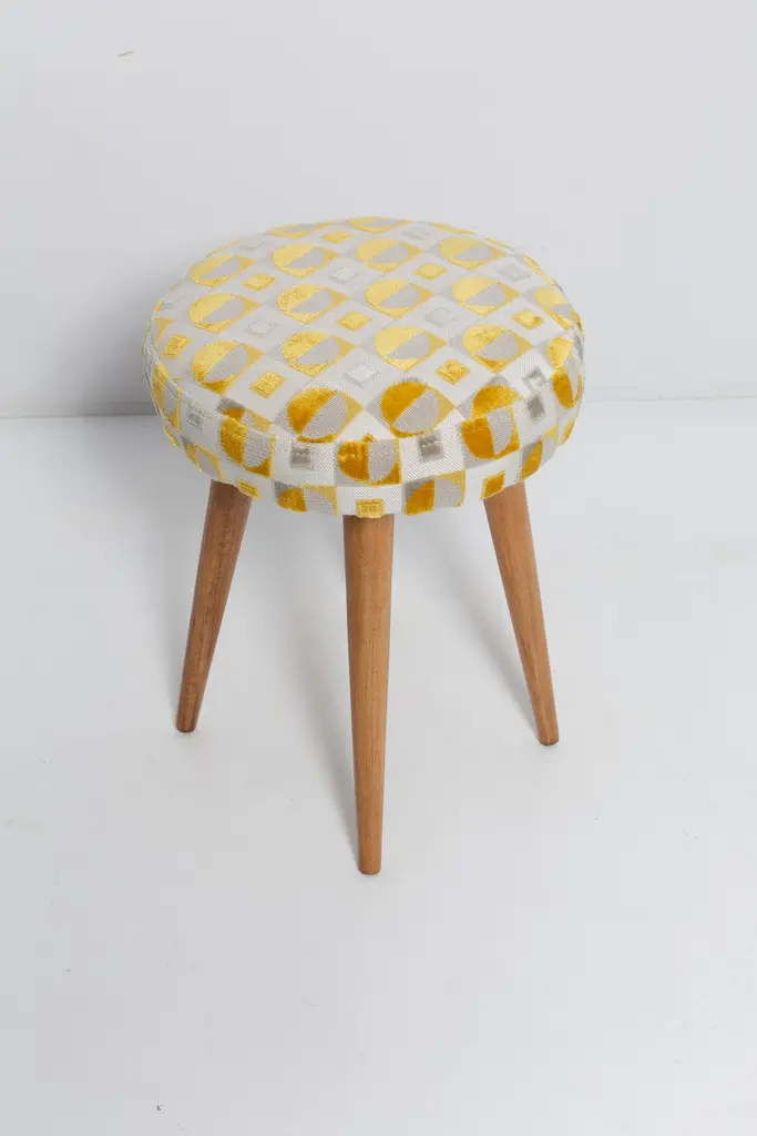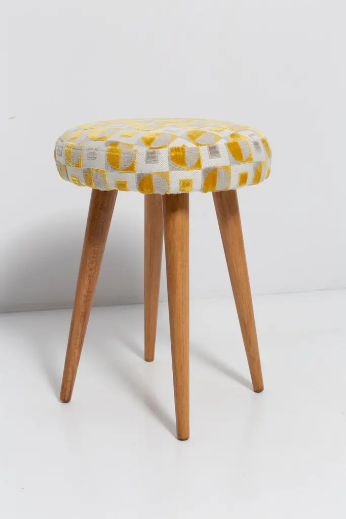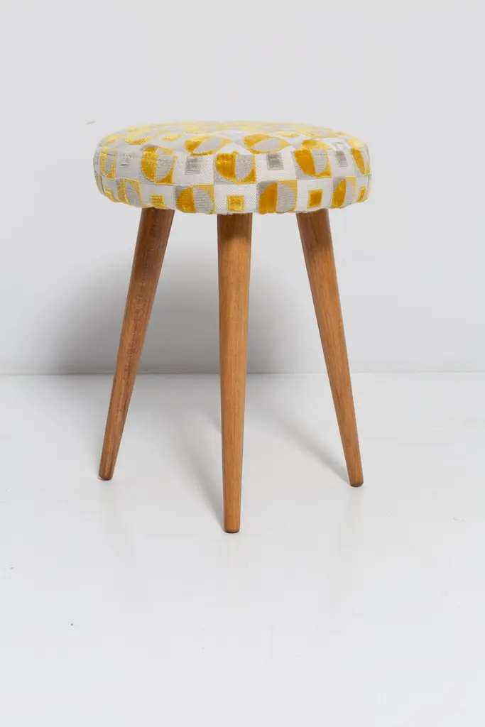 Stool from the turn of the 1960s and 1970s. Beautiful beige and yellow upholstery. The stool consists of an upholstered part, a seat and wooden legs narrowing downwards, characteristic of the 1960s style. We can prepare this pair also in another color of fabric and wood.